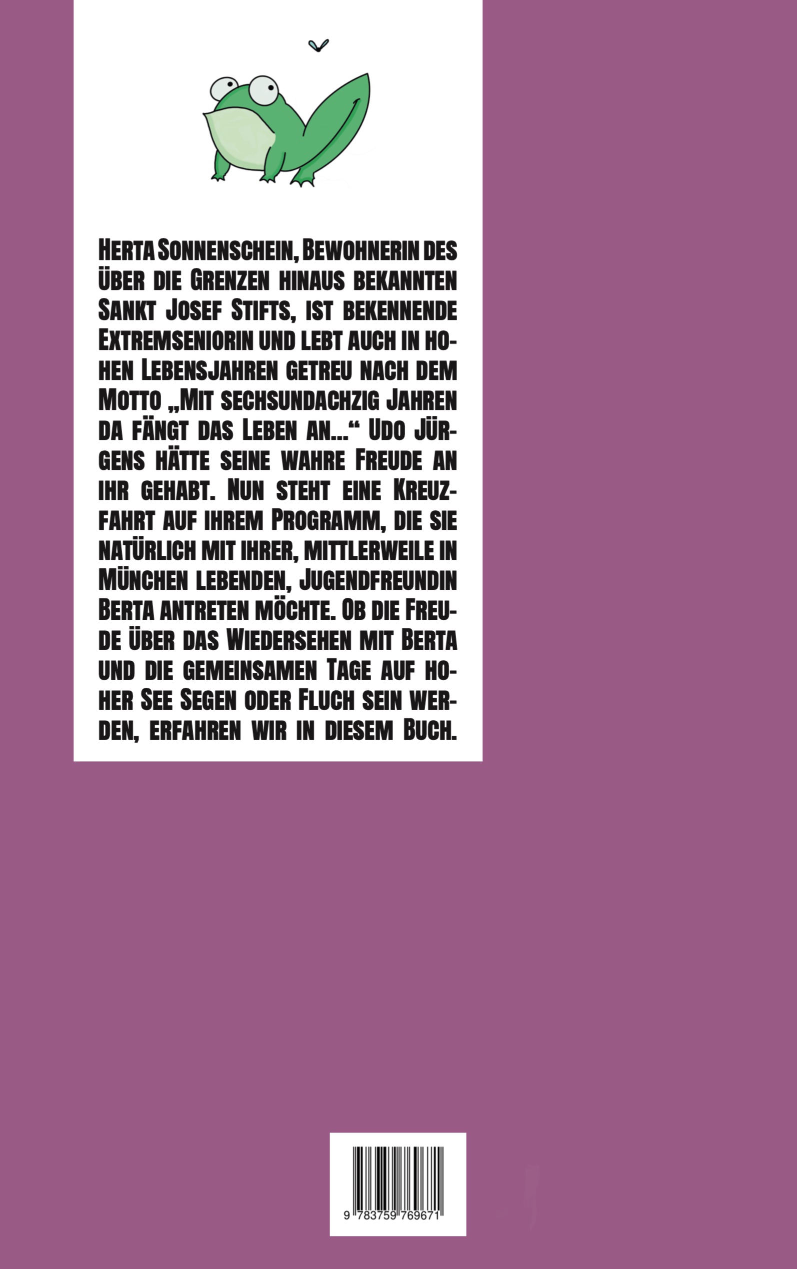 Herta Sonnenschein, Bewohnerin des über die Grenzen hinaus bekannten Sankt Josef Stifts, ist bekennende Extremseniorin. Nun steht eine Kreuzfahrt auf ihrem Programm, die sie natürlich mit ihrer, mittlerweile in München lebenden, Jugendfreundin Berta antreten möchte. Ob die Freude über das Wiedersehen mit Berta und die gemeinsamen Tage auf hoher See Segen oder Fluch sein werden, erfahren wir in diesem Buch.