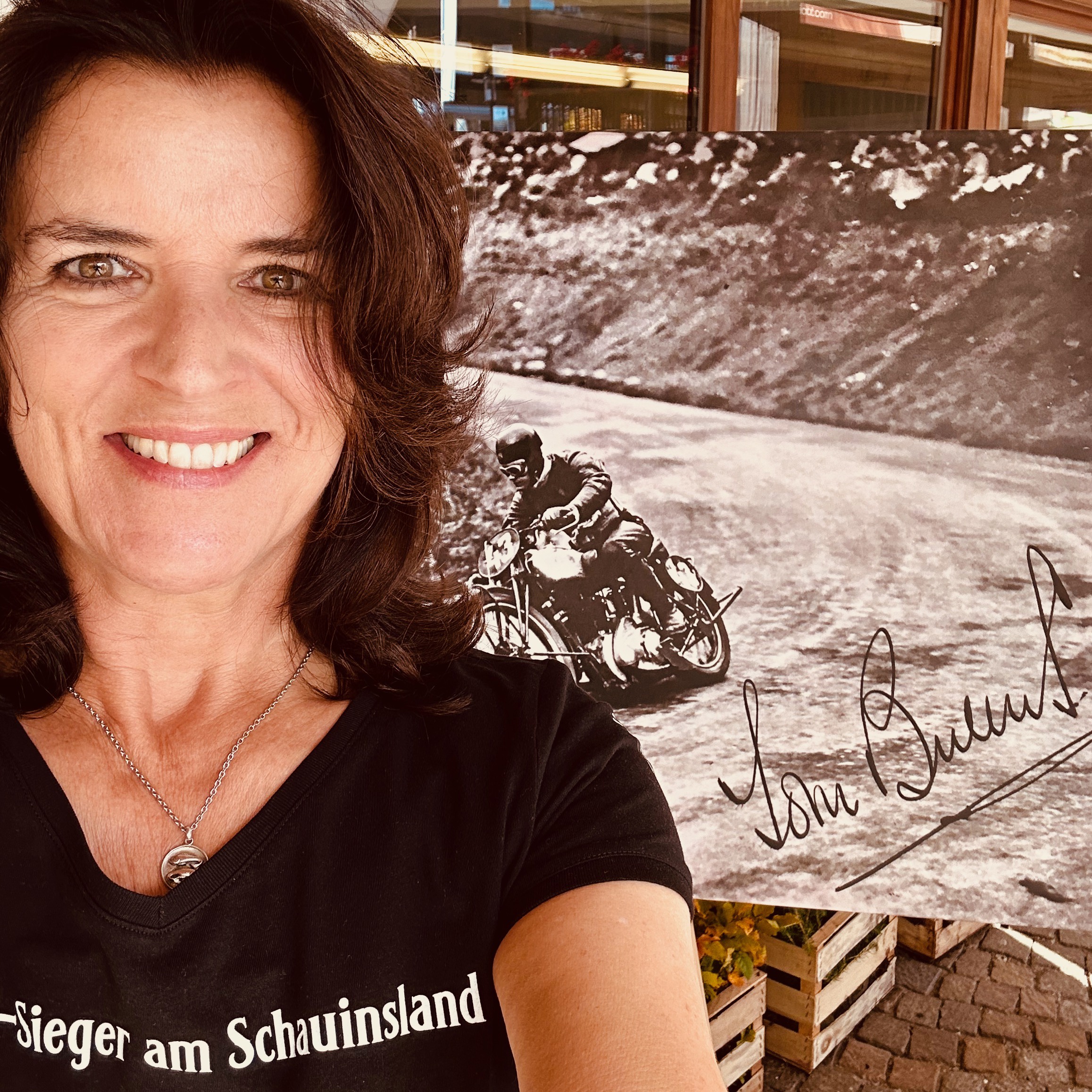 Anfang zwanzig verließ die gebürtige Stuttgarterin ihre Heimat, um für sechs Jahre in Kalifornien und Paris Betriebswirtschaft und das Leben zu studieren. 1993 folgte sie einem Job-Angebot von BMG Ariola und ließ sich in München nieder, um ihre erste Berufung in der Musikbranche zu finden. Nach zwölf turbulenten Jahren im Marketing internationaler Künstler war sie neugierig geworden, was das Leben sonst noch zu bieten hatte und ging ab vierzig diversen anderen Aktivitäten nach. Heute pendelt sie als freie Autorin, Texterin und Übersetzerin zwischen Starnberg und Stuttgart. „Dass mein Urgroßvater Anfang des 20. Jahrhunderts Direktor der berühmten Neckarsulmer Fahrzeugwerke NSU gewesen und meine Großmutter mit Kindermädchen und Chauffeur aufgewachsen war, hatte ich in meiner Kindheit oft gehört. Sehnsüchtig erzählte Omi von damals und auch immer wieder von der unglaublichen (Liebes-)Geschichte ihrer kleinen Schwester Hilde mit dem feschen Engländer Tommy, der für NSU Motorradrennen gefahren war. Tante Hilde und Onkel Tommy nannte sie meine Mutter und nur so kannte ich die beiden. Wenn sie aus England zu Besuch kamen, war es immer ein Highlight – die Familie und das großmütterliche Haus am Stuttgarter Bismarckturm befanden sich dann im Ausnahmezustand. Nachdem meine Großmutter zu Beginn dieses Jahrhunderts im hohen Alter verstorben war, war es an mir, das Haus, das seit 1935 als Familiensitz gedient hatte, aufzulösen. Unzählige Fotografien, Dokumente, Briefe und andere Memorabilien fielen in meine Hände. Insbesondere Onkel Tommys persönliche Notizen über seine Rennjahre bei NSU fesselten mein Interesse. Mit fortschreitendem Studium der Unterlagen wurde aus meiner Tante Hilde das charismatische, hübsche und mutige Nesthäkchen des NSU-Direktors und aus meinem Onkel Tommy der gutaussehende, gnadenlos talentierte und allseits beliebte Motorrad-Rennfahrer Tom Bullus aus Yorkshire, der in den Jahren 1930 bis 1932 als Nummer eins der NSU-Werksmannschaft von Sieg zu Sieg gefahren war und nur durch die Liebe seines Lebens gestoppt werden konnte. Diese Geschichte musste ich einfach aufschreiben.“
