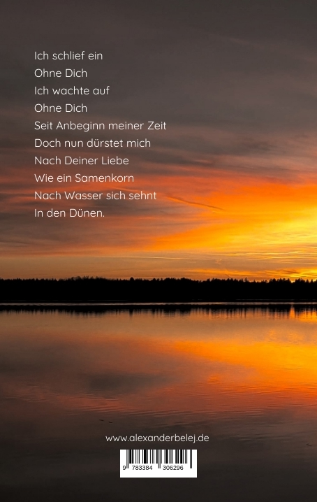 Alexander Karl Belej, am 16.Jänner 1975 in München geboren, (Deutsch-) Österreicher, studierte berufsbegleitend Betriebswirtschaft und war einige Jahre erfolgreich selbständig, bis er sein „altes Leben“, mit allem, was dazu gehörte, aufgab. Neben seiner jetzigen Tätigkeit als „Impulsgeber“ für Körper und Seele in eigener Praxis, geht er - intensiver denn je - seinen Leidenschaften nach. Eine davon - das Schreiben - findet unter anderem in dem Gedichtebüchlein "Feuer meiner Seele" ihre Erfüllung. Er verfasst Gedichte und Geschichten, begleitet seinen Gesang selbst auf der Gitarre und hat die große Freude an einfachen Dingen, wie zum Beispiel an einem guten Cappuccino oder langen Aufenthalten in der Natur, wo die meisten dieser Texte entstanden. Mit größtem Interesse ist er immer auf der Suche nach dem tieferen Sinn hinter allem im Leben. Die kleine Stadt Schwabmünchen, südlich von Augsburg gelegen, die er sein zu Hause nennt und in der er seine Praxis mit craniosacraler Entspannungstherapie betreibt, ist ihm in den letzten 1,5 Jahren sehr ans Herz gewachsen. Die Nähe zum Lech, zur Wertach und den westlichen Wäldern bietet den Raum für den Rückzug in die Natur und guten Cappuccino gibts hier u.a. im Eiscafe Venezia. Seine vielleicht wichtigste Erfahrung im bisherigen Leben war das Ableben seiner treuen fellschnäuzigen Weggefährtin Tinka und damit den Tod als wichtigen und unvermeidbaren Teil des Lebens zu akzeptieren und anzunehmen. Auch ihr widmete er ein wundervolles Gedicht in seinem Buch.