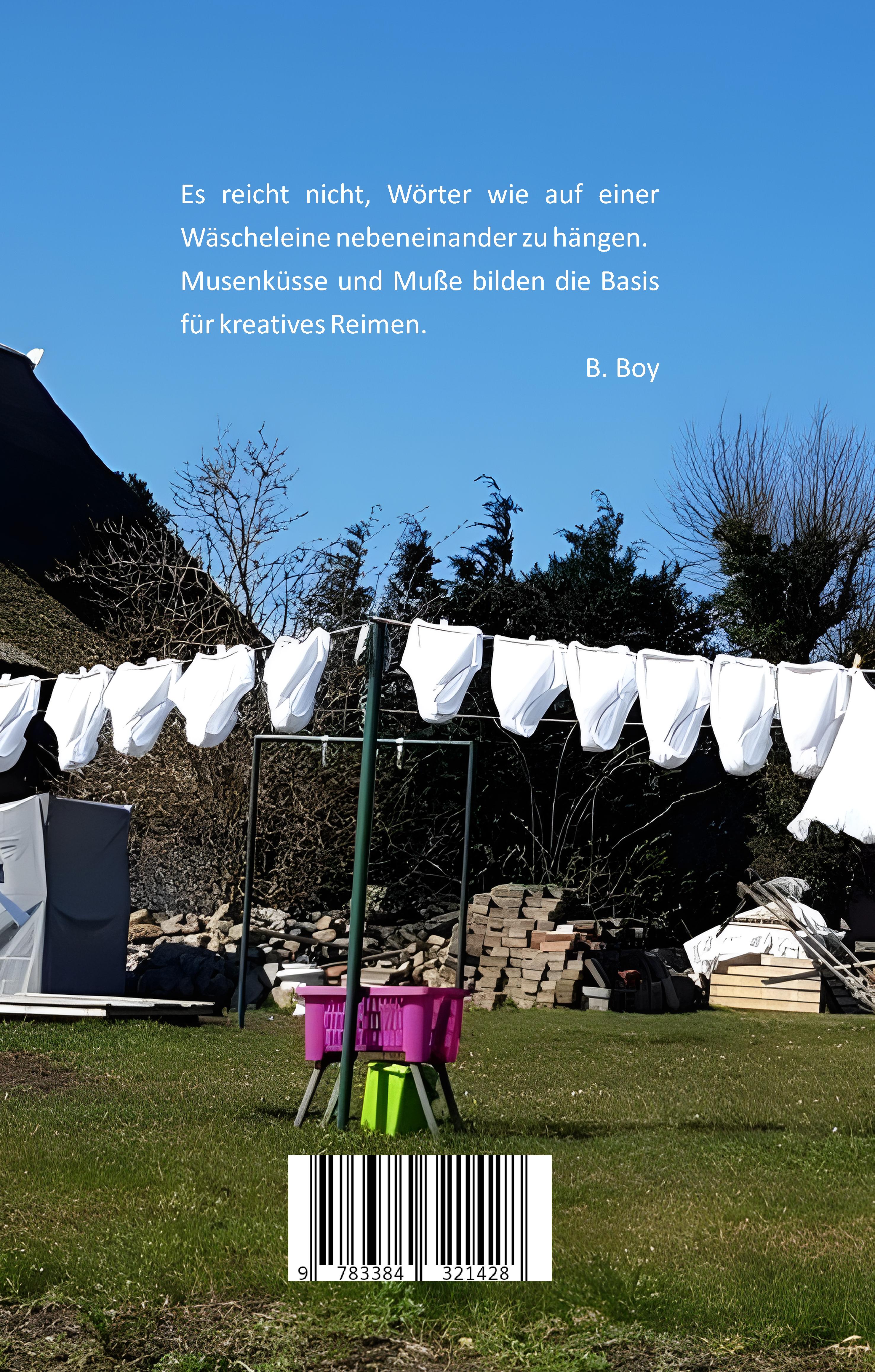 Es reicht nicht, Wörter wie auf einer Wäscheleine nebeneinander zu hängen. Musenküsse und Muße bilden die Basis für kreatives Reimen. - B. Boy Gereimte Gedanken über Leben, Lust und Liebe, Natur und Heimat - ergänzt durch Lieder und Aphorismen.