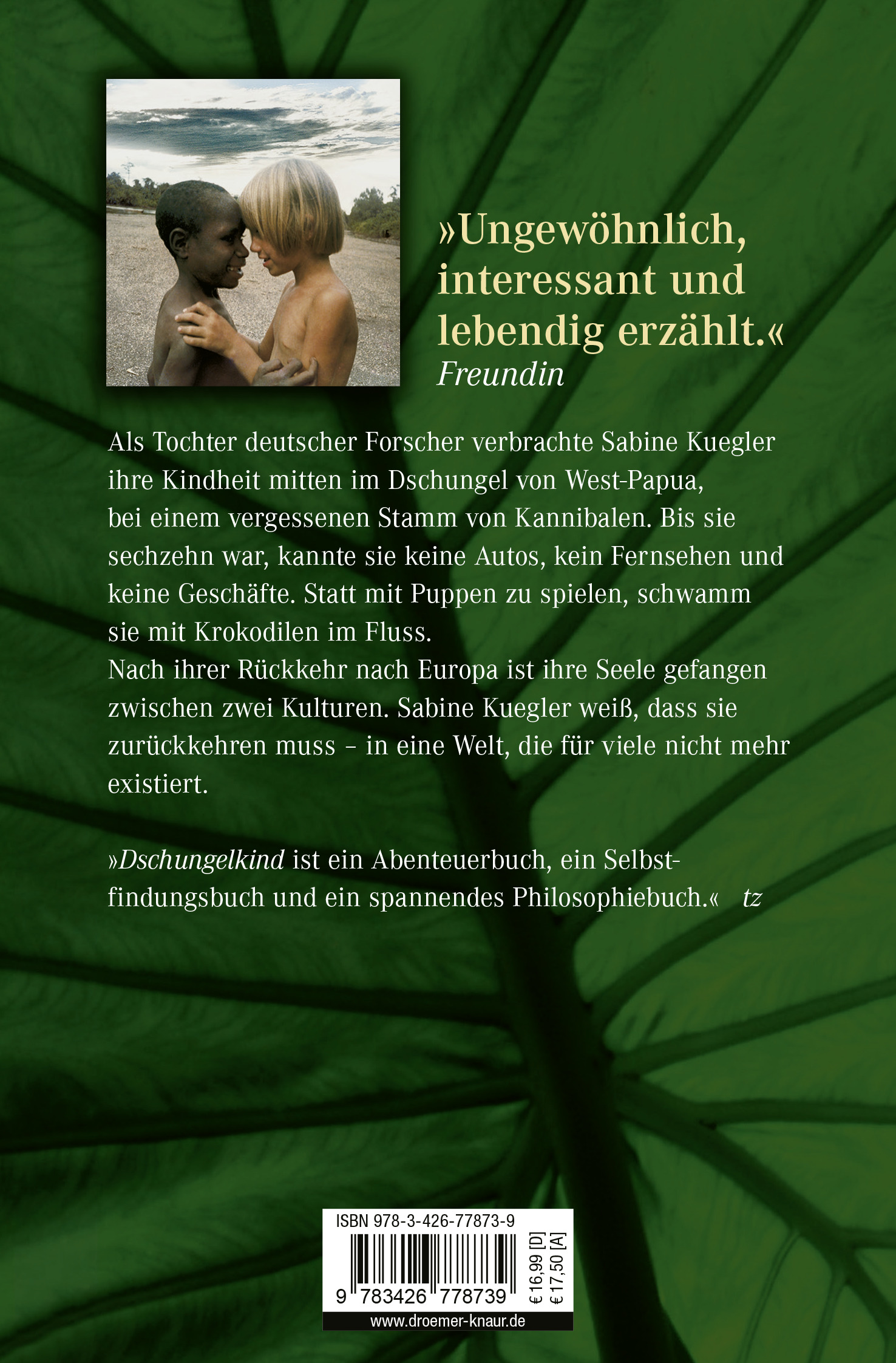 Was uns unvorstellbar erscheint - Sabine Kuegler hat es erlebt: Als Tochter deutscher Forscher verbrachte sie ihre Kindheit mitten im Dschungel von West-Papua, bei einem vergessenen Stamm von Kannibalen. Bis sie siebzehn war, kannte sie keine Autos, kein Fernsehen und keine Geschäfte. Sie spielte nicht mit Puppen, sondern schwamm mit Krokodilen im Fluss - und erlebte schon früh die alten Rituale des Tötens. Die Natur war ihr Spielplatz, der Dschungel ihre Heimat, der Himmel ihr Dach. Heute, nach Jahren in Europa, ist ihre Seele gefangen zwischen zwei Kulturen. Sabine Kuegler weiß, dass sie zurückkehren muss - zurück in eine Welt, die für viele nicht mehr existiert.