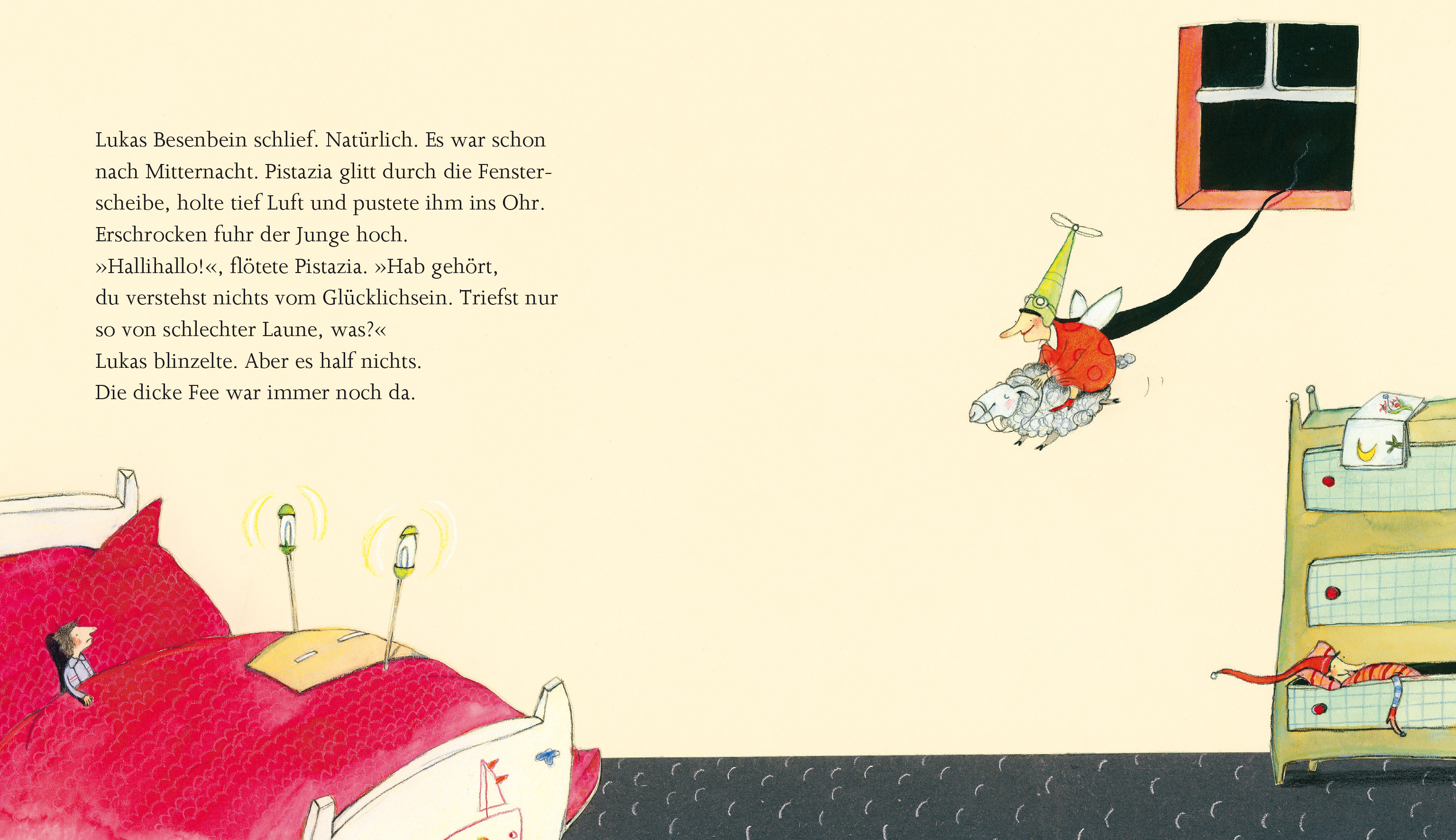 Manche Menschen verstehen nichts vom Glücklichsein. Sie sind hartnäckige Fälle von Griesgrämigkeit und schlechter Laune. Solche Unglücksraben sind Glücksfee Pistazias Spezialgebiet. Ihr Feenstaub macht die Welt so grün und blau und rot und gelb, dass man vor Glück platzen könnte! Hilft garantiert!