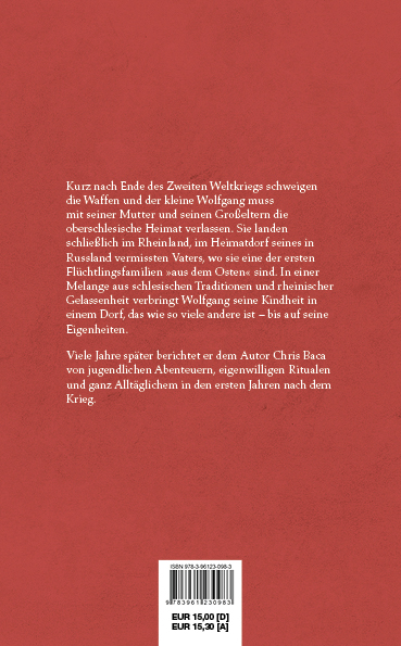 Kurz nach Ende des Zweiten Weltkriegs schweigen die Waffen und der kleine Wolfgang muss mit seiner Mutter und seinen Großeltern die oberschlesische Heimat verlassen. Sie landen schließlich im Rheinland, im Heimatdorf seines in Russland vermissten Vaters, wo sie eine der ersten Flüchtlingsfamilien »aus dem Osten« sind. In einer Melange aus schlesischen Traditionen und rheinischer Gelassenheit verbringt Wolfgang seine Kindheit, in einem Dorf, das wie so viele andere ist – bis auf seine Eigenheiten.