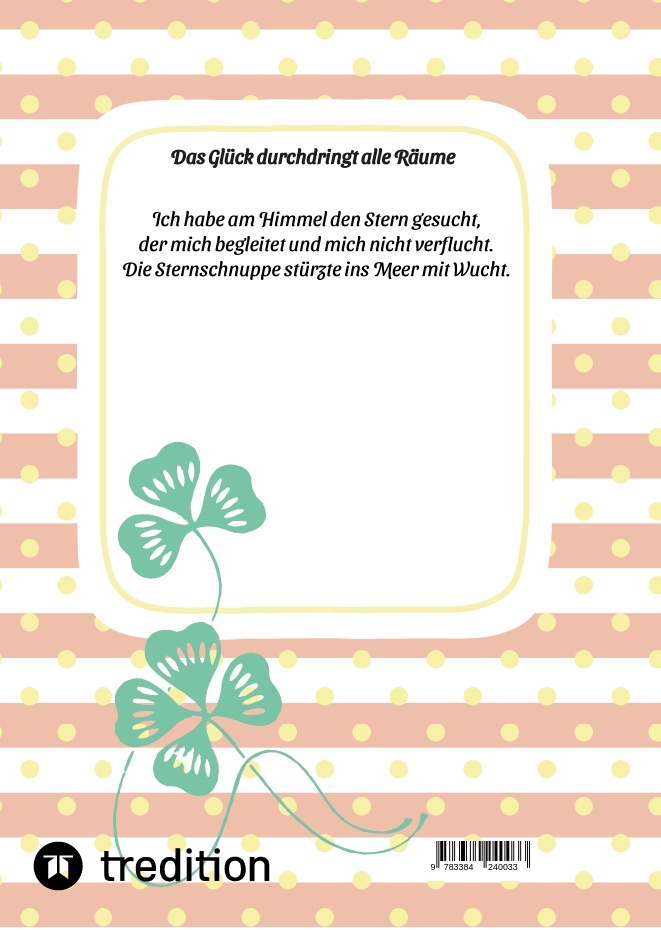 Der fünfte Gedichtband ist praktisch die Fortsetzung von "Melodie des Lebens". Die inhaltliche Vielfalt der Themen hat eine rote Schnur, der Blick der Autorin in die Welt und ihre Gabe Erlebtes in Reime zu fassen.
