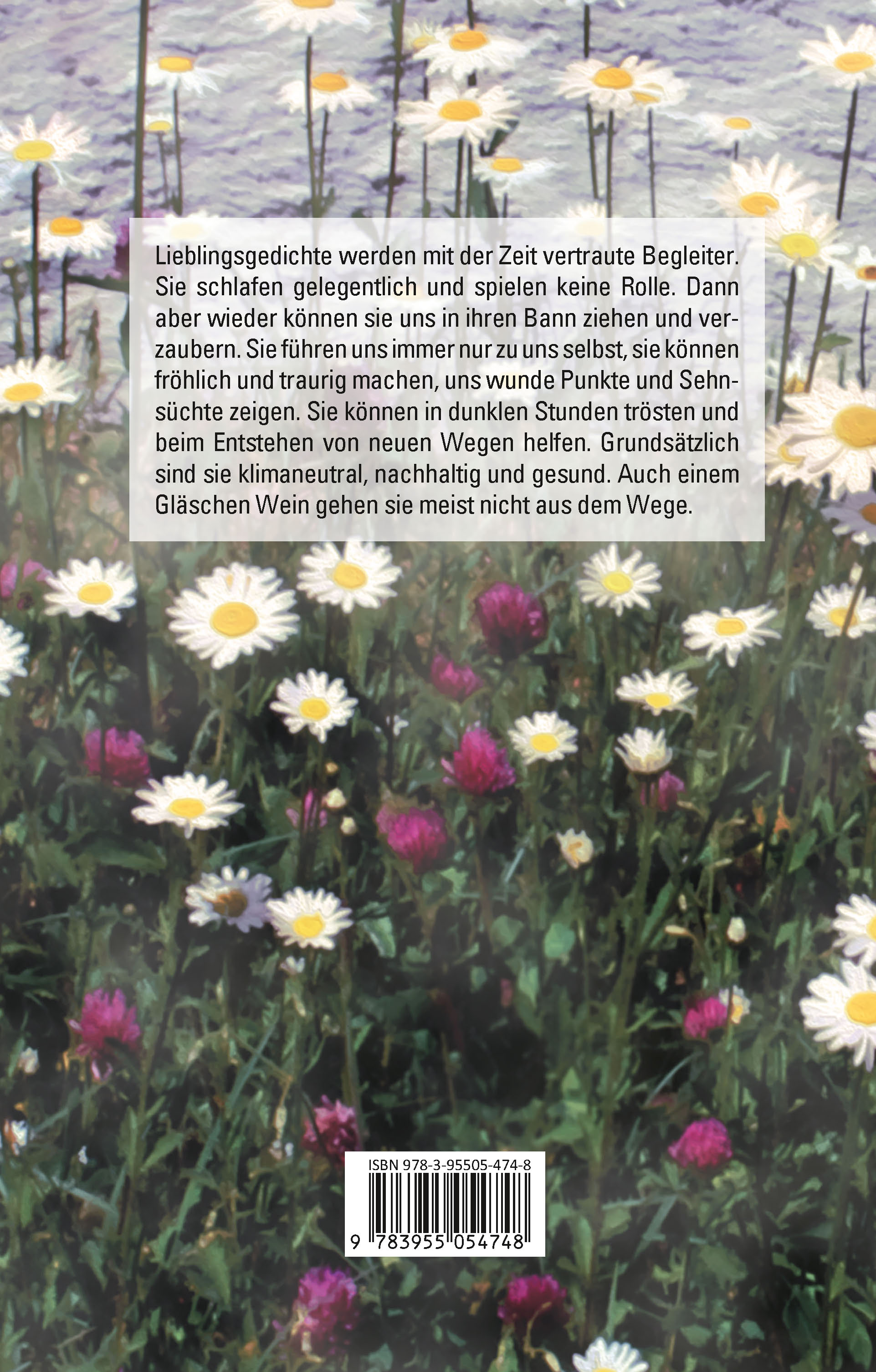 Lieblingsgedichte werden mit der Zeit vertraute Begleiter. Sie schlafen gelegentlich und spielen keine Rolle. Dann aber wieder können sie uns in ihren Bann ziehen und verzaubern. Sie führen uns immer nur zu uns selbst, sie können fröhlich und traurig machen, uns wunde Punkte und Sehnsüchte zeigen. Sie können in dunklen Stunden trösten und beim Entstehen von neuen Wegen helfen. Grundsätzlich sind sie klimaneutral, nachhaltig und gesund. Auch einem Gläschen Wein gehen sie meist nicht aus dem Wege.