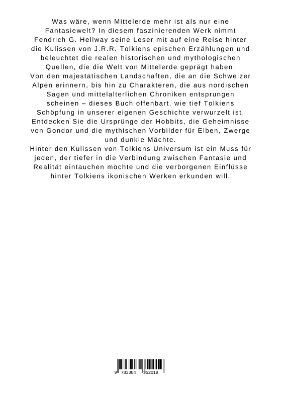 Was wäre, wenn Mittelerde mehr ist als nur eine Fantasiewelt? In diesem faszinierenden Werk nimmt Fendrich G. Hellway seine Leser mit auf eine Reise hinter die Kulissen von J.R.R. Tolkiens epischen Erzählungen und beleuchtet die realen historischen und mythologischen Quellen, die die Welt von Mittelerde geprägt haben.Von den majestätischen Landschaften, die an die Schweizer Alpen erinnern, bis hin zu Charakteren, die aus nordischen Sagen und mittelalterlichen Chroniken entsprungen scheinen - dieses Buch offenbart, wie tief Tolkiens Schöpfung in unserer eigenen Geschichte verwurzelt ist. Entdecken Sie die Ursprünge der Hobbits, die Geheimnisse von Gondor und die mythischen Vorbilder für Elben, Zwerge und dunkle Mächte.Hinter den Kulissen von Tolkiens Universum ist ein Muss für jeden, der tiefer in die Verbindung zwischen Fantasie und Realität eintauchen möchte und die verborgenen Einflüsse hinter Tolkiens ikonischen Werken erkunden will.