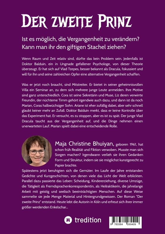 Maja Christine Bhuiyan, geboren 1961, ist eine Autorin, die ihre vielschichtigen Lebenserfahrungen meisterhaft in literarische Schöpfungen umwandelt. Schon früh begann sie, Realität und Fiktion zu einem einzigartigen literarischen Gewebe zu verflechten, was sich durch ihre gesamte Karriere zieht. Ihre Fähigkeit, tiefgründige Gedanken mit einer fast malerischen Qualität zu Papier zu bingen, hat im Laufe der Zeit eine treue Leserschaft gewonnen. Maja Christine Bhuiyan hat eine bemerkenswerte Lebensgeschiche, die ebenso farbenfroh und vielfältig ist wie ihre literarischen Werke. Nach einer bewegten Vergangenheit, die eine Scheidung und die Herausforderungen der Alleinerziehung ihrer Kinder umfasst, fand sie in ihren beruflichen Rollen - als Fremsprachenkorrespondentin und Heilpraktikerin - nicht nur ein Auslkommen, sondern auch eine unerschöpfliche Quelle der Inspiration. Ihre tiefgehenden Erfahrungen mit geistig und seelisch beeinträchtigen Menschen bereicherten ihr Verständnis menschlicher Psyche und Emotionen, was ihr Schreiben mit ungewöhnlicher Empathie und Tiefe füllt. Diese vielfältigen Lebenserfahrungen fließen in ihren Roman "Der Zweite Prinz" ein, in dem sie sich mit Themen wie Zeit, Identität und menschlicher Resilienz auseinandersetzt. Ihr umfangreiches Hintergrundwissen und ihre persönlichen Erfahrungen ermöglichen es ihr, komplexe Charaktere und Situationen mit Authentizität und fachlicher Genauigkeit zu gestalten. Ihre Geschichten sind nicht nur unterhaltsam, sondern regen auch zum Nachdenken an, da sie tiefgreifende Fragen über das Wesen der Realität und die Gestaltung unserer Vergangenheit aufwerfen. Maja Christine Bhuiyan lebt heute in Köln, wo sie von einer wachsenden Zahl von Enkeln umgeben ist. Diese persönliche Freude und ihr kontinuierliches Engagement für das Schreiben machen sie zu einer Stimme, die nicht nur aus Erfahrung spricht, sondern auch eine tiefe Verbindung zu den Themen ihrer Werke hat. Leser, die sich auf der"Der zweite Prinz" einlassen, werden nicht nur in eine fesselnde Erzählung eintauchen, sondern auch die seltene Gelegenheit haben, von einer Autorin zu lernen, deren Leben selbst ein Zeugnis von Wandel und Überlebenskraft ist.