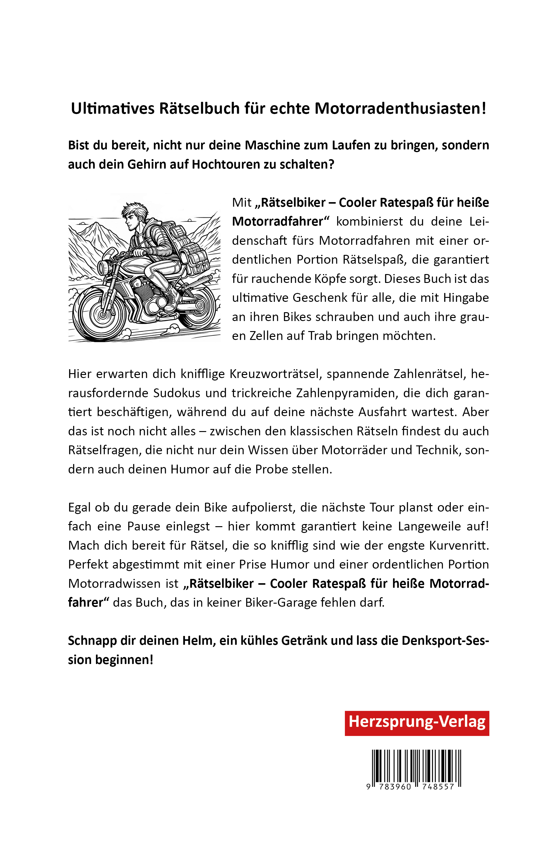 Hier erwarten dich knifflige Kreuzworträtsel, spannende Zahlenrätsel, herausfordernde Sudokus und trickreiche Zahlenpyramiden, die dich garantiert beschäftigen, während du auf deine nächste Ausfahrt wartest. Aber das ist noch nicht alles – zwischen den klassischen Rätseln findest du auch Rätselfragen, die nicht nur dein Wissen über Motorräder und Technik, sondern auch deinen Humor auf die Probe stellen.