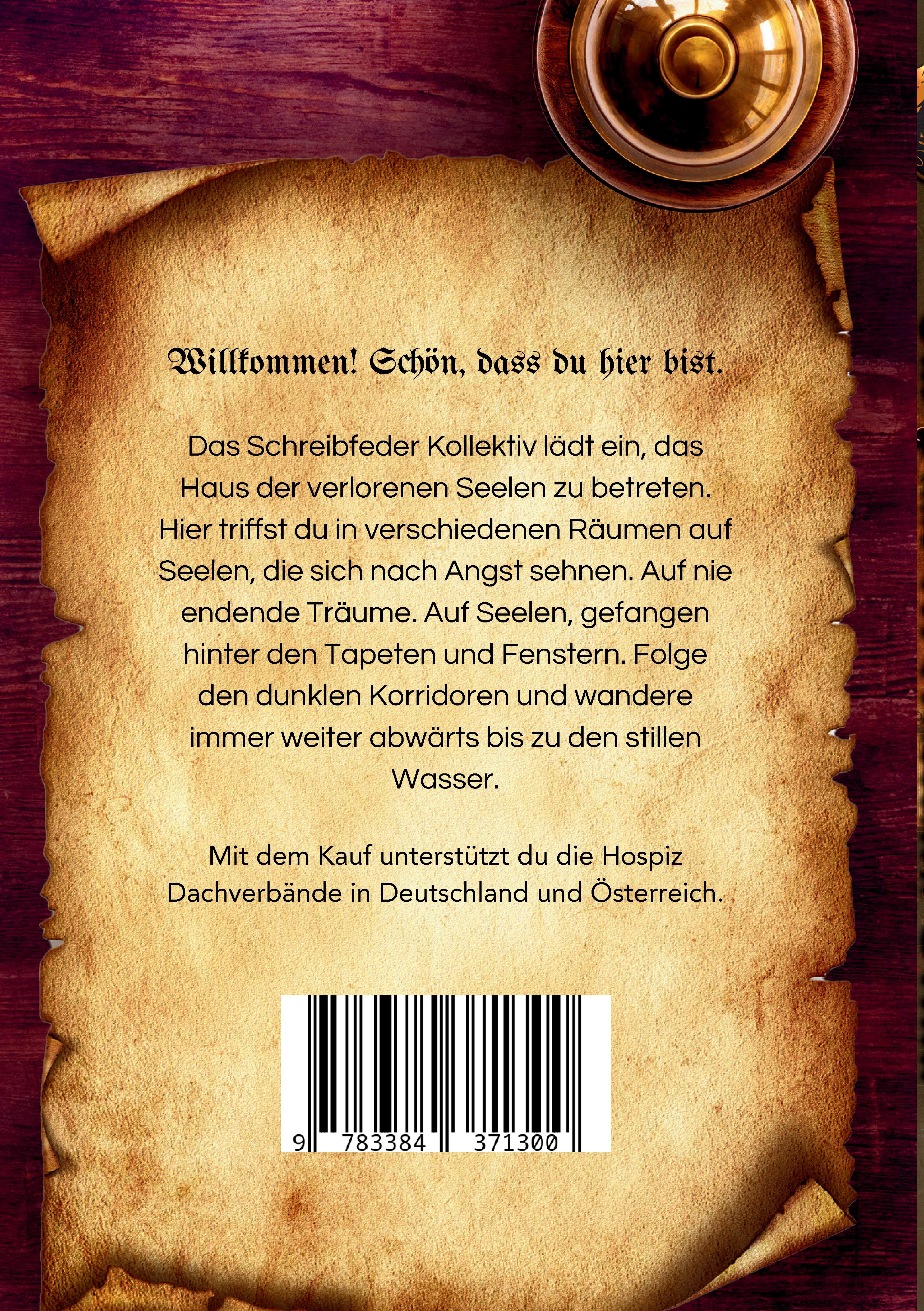 Das Schreibfeder Kollektiv lädt ein, das Haus der verlorenen Seelen zu betreten. Hier triffst du in verschiedenen Räumen auf Seelen, die sich nach Angst sehnen. Auf nie endende Träume. Auf Seelen, gefangen hinter den Tapeten und Fenstern. Folge den dunklen Korridoren und wandere immer weiter abwärts bis zu den stillen Wasser.