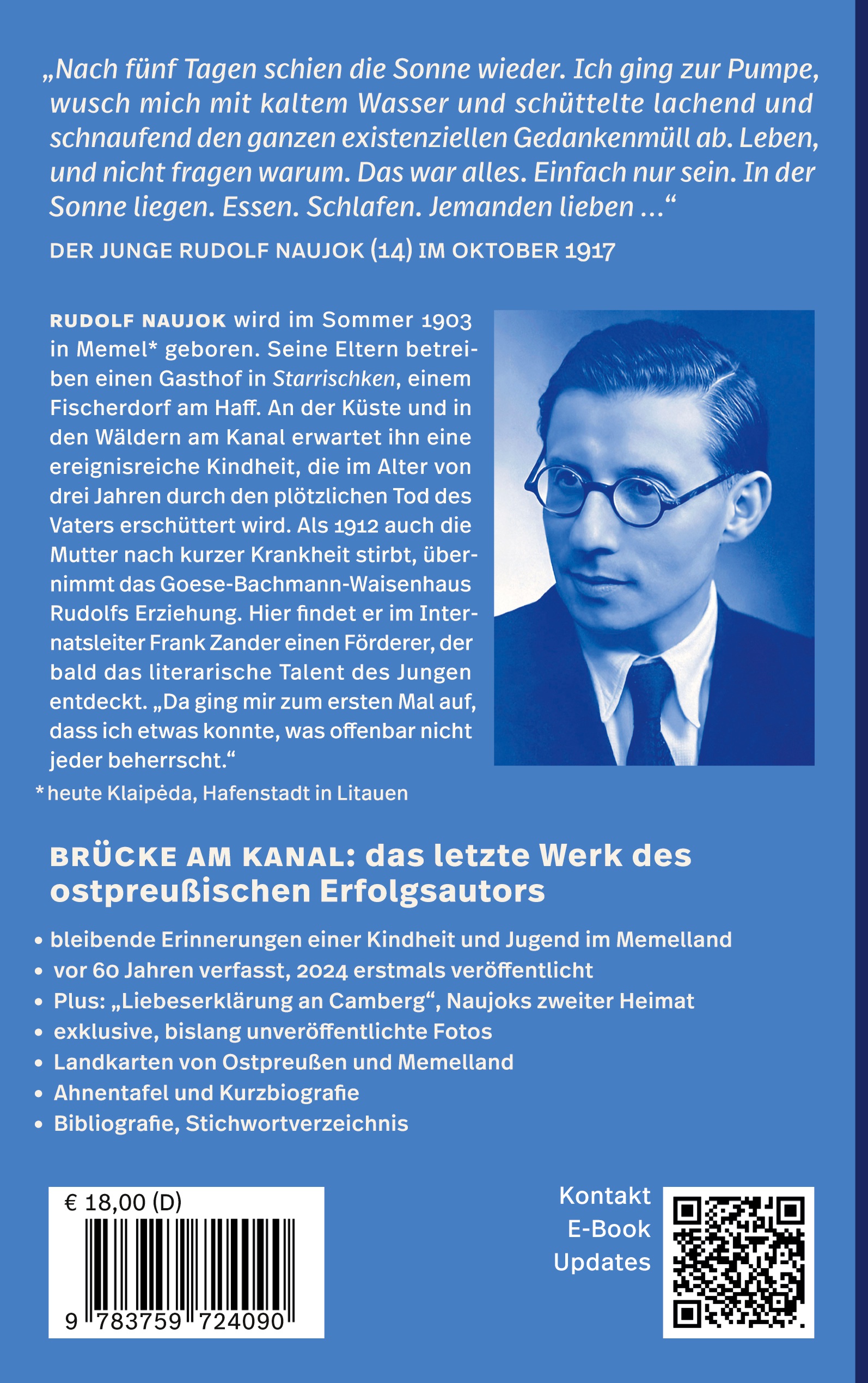 Rudolf Naujok, 1903 in Memel geboren, 1969 in Camberg im Taunus gestorben, zählt als Autor von acht Romanen und Herausgeber ostpreußischer Literatur zu den wichtigsten Schriftstellern der Memelregion - neben Martin Kakies, Hermann Sudermann und Charlotte Keyser. Seine Kindheitserinnerungen aus der Zeit von 1903 bis 1918, vor 60 Jahren aufgeschrieben, erscheinen 2024 zum ersten Mal. Nach der Vertreibung aus dem Memelland und Ostpreußen fand Rudolf Naujok seine Familie Ende 1945 in Niedersachsen wieder. In Stelle bei Hamburg leitete er für kurze Zeit eine Volksschule, bis er Anfang 1949 in Camberg im Taunus heimisch wurde. In dem Taunusstädtchen begann seine langjährige Tätigkeit als Klassen- und Fachlehrer. Neben seinen beruflichen Verpflichtungen stellte sich Rudolf Naujok immer wieder literarischen Herausforderungen, veröffentlichte Romane und Erzählungen, gab Bildbände heraus sowie Sammlungen von Kurzgeschichten.