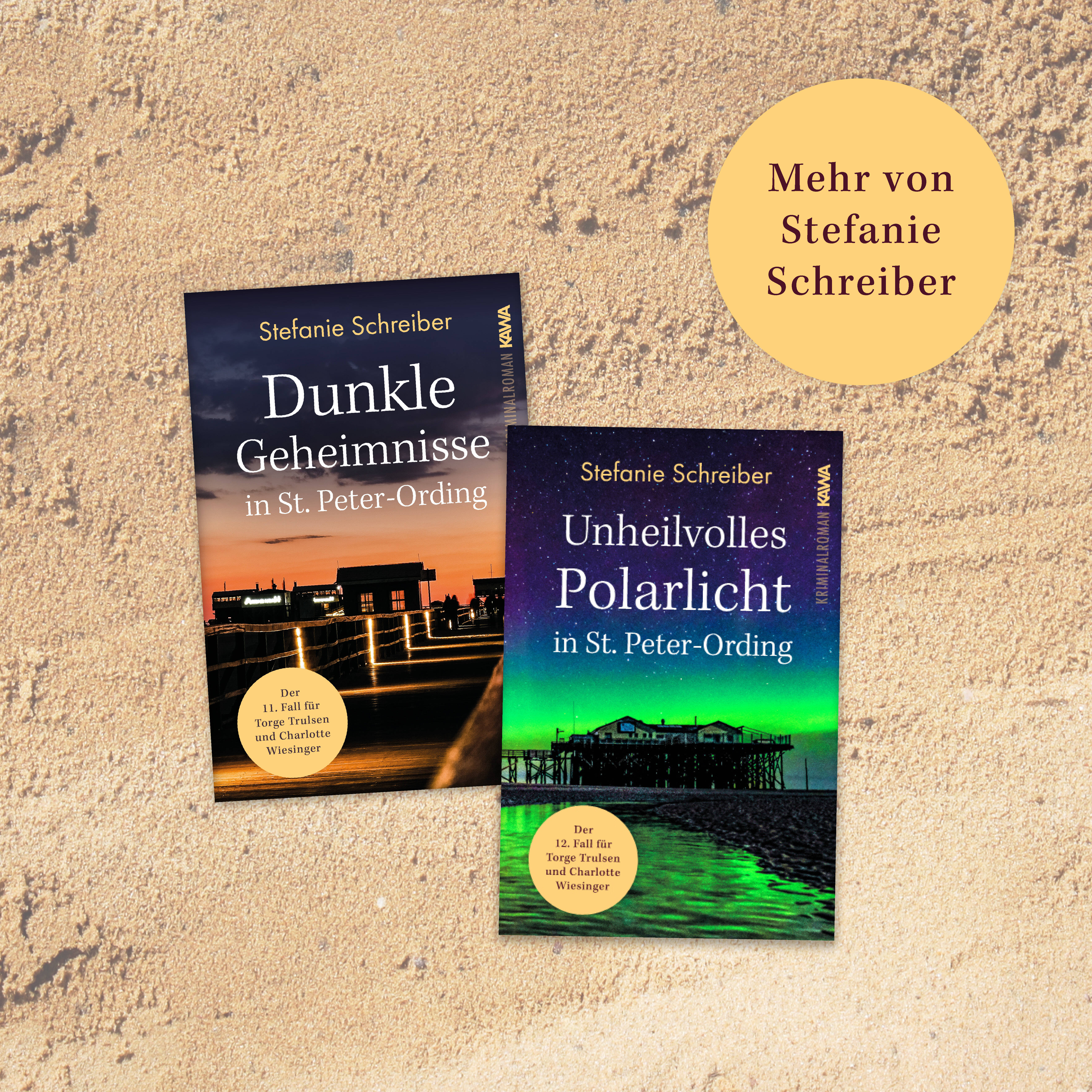 Stefanie Schreiber ist Dipl.-Kauffrau, Fachjournalistin und Krimiautorin aus Leidenschaft. Die Autorin über sich Meine Leidenschaft für das Schreiben entstand bereits vor über fünfundzwanzig Jahren, doch ich hatte mich nach meinem betriebswirtschaftlichen Studium gerade selbständig gemacht und wollte erst einmal "bodenständig arbeiten", um meine Existenz zu sichern. Meine Liebe zur Nordsee begann nach dem Abitur bei einem zehntägigen Aufenthalt nahe Heide, weil mein Geld für die geplante Nordkap-Tour nicht reichte. Der Urlaub legte außerdem den Grundstein zu meiner Altersvorsorge mit Ferienimmobilien; ich träumte seitdem von einem eigenen Haus unter Reet. Als ich 2011 beschloss, mich endlich dem Schreiben zu widmen, entschied ich mich für ein berufsbegleitendes Journalismus-Studium, um meine Schreibkompetenz auf professionelle Beine zu stellen. Die daraus resultierende Idee, mein betriebswirtschaftliches Know-how und meine langjährige Vermietungserfahrung in Wirtschaftsratgebern zu vereinen, brachte mich über die nächsten Jahre von meinem Plan ab, Geschichten zu erzählen. 2017 plante ich meinen ersten Krimi. In einem Work-shop entstand die Idee, auch diesem den Ferienhaus-Background zu verleihen - und wo ist es schöner als in Sankt Peter-Ording? Ich baute die Weiße Düne und schuf meinen schrulligen Hausmeister Torge Trulsen, der als Miss-Marple-artiger Hobbyermittler, den Kommissaren gerne dazwischenfunkt. Nach Vollendung meines achten Sankt-Peter-Ording-Krimis küsste mich die Muse. Die Charaktere Emilia und Piet Anderson erblickten das Licht der Welt und ermitteln nun parallel in meiner neuen Reihe "Nordfriesen-Küstenkrimi".