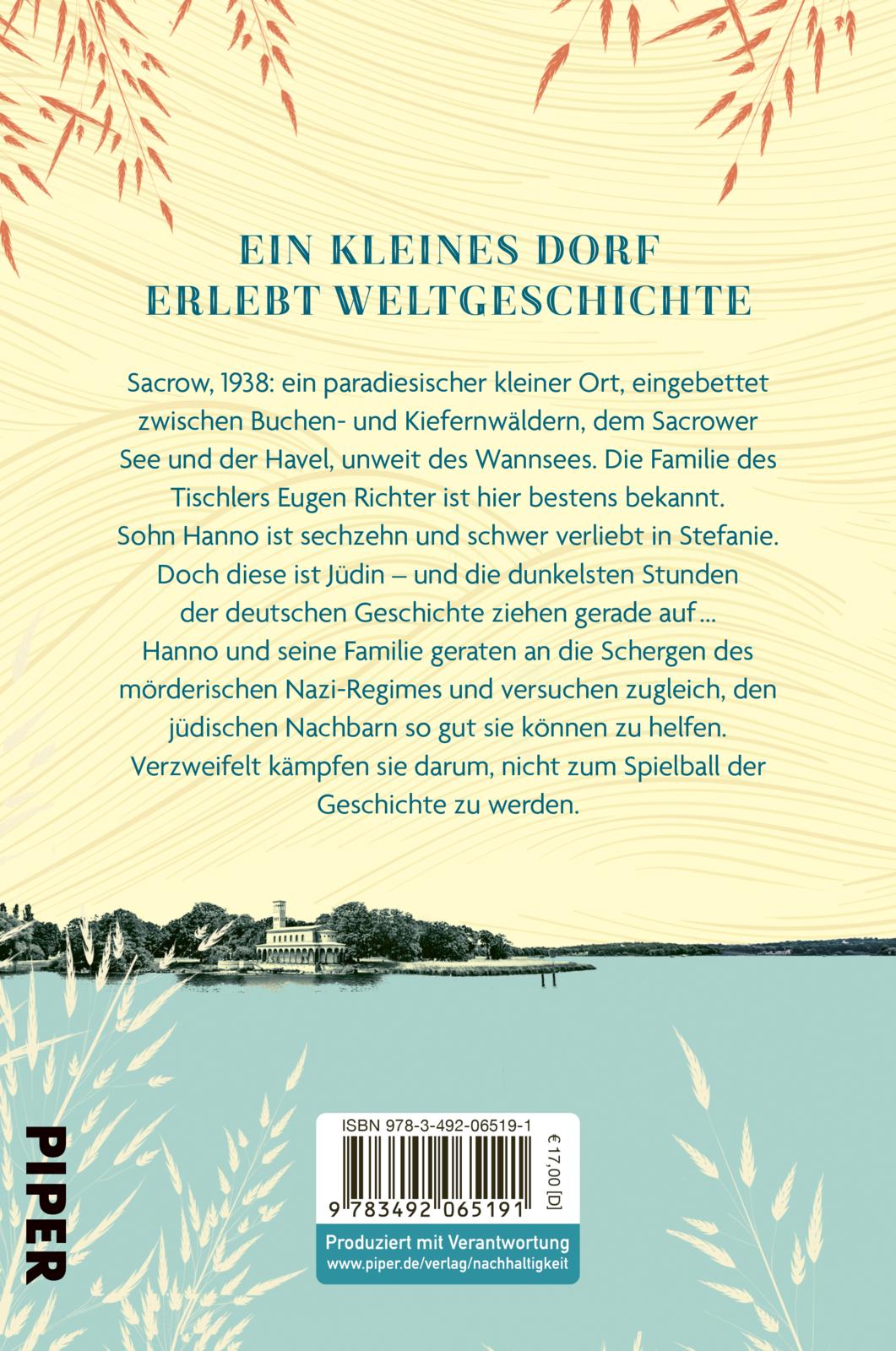 Sacrow, 1938: Die Tischler-Familie um Vater Eugen ist in dem kleinen Dorf unweit des Wannsees bestens bekannt. Sohn Hanno ist sechzehn und schwer verliebt in Stefanie. Doch diese ist Jüdin. Das junge Glück sieht sich den Vorurteilen und dem Hass der Zeit ausgesetzt. In dem paradiesischen Dorf, eingebettet zwischen Buchen- und Kiefernwäldern, dem Sacrower See und der Havel, werden Hanno und seine Familie in den folgenden Jahren die dunkelsten Stunden der deutschen Geschichte erleben und darum kämpfen müssen, nicht zu deren Spielball zu werden.