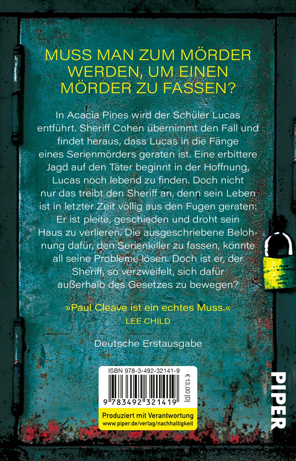 In Acacia Pines wird der Schüler Lucas entführt. Sheriff Cohen übernimmt den Fall und findet heraus, dass Lucas in die Fänge eines Serienmörders geraten ist. Eine erbittere Jagd auf den Täter beginnt in der Hoffnung, Lucas noch lebend zu finden. Doch nicht nur das treibt den Sheriff an, denn sein Leben ist in letzter Zeit völlig aus den Fugen geraten: Er ist pleite, geschieden und droht sein Haus zu verlieren. Die ausgeschriebene Belohnung dafür, den Serienkiller zu fassen, könnte all seine Probleme lösen. Doch ist er, der Sheriff, so verzweifelt, sich dafür außerhalb des Gesetzes zu bewegen?