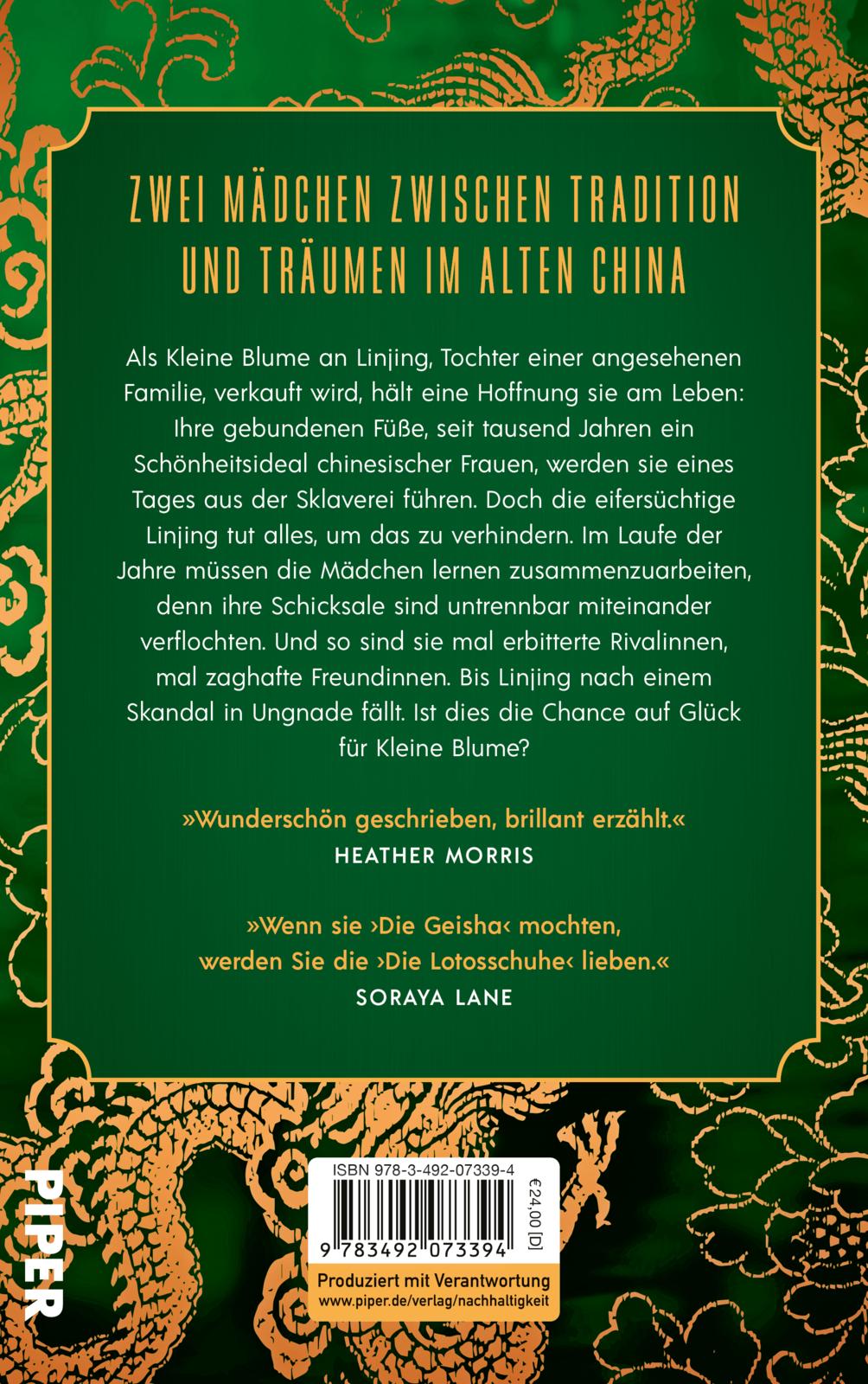 »'Die Lotosschuhe' handelt von der Notlage der Frauen im China des 19. Jahrhunderts und, was noch wichtiger ist, von ihrem Geist, ihrem Mut, für sich selbst und füreinander einzustehen in einer Welt, in der Sklaverei, gebundene Füße und das Patriarchat versuchen, sie zu unterdrücken.« Natasha Lester