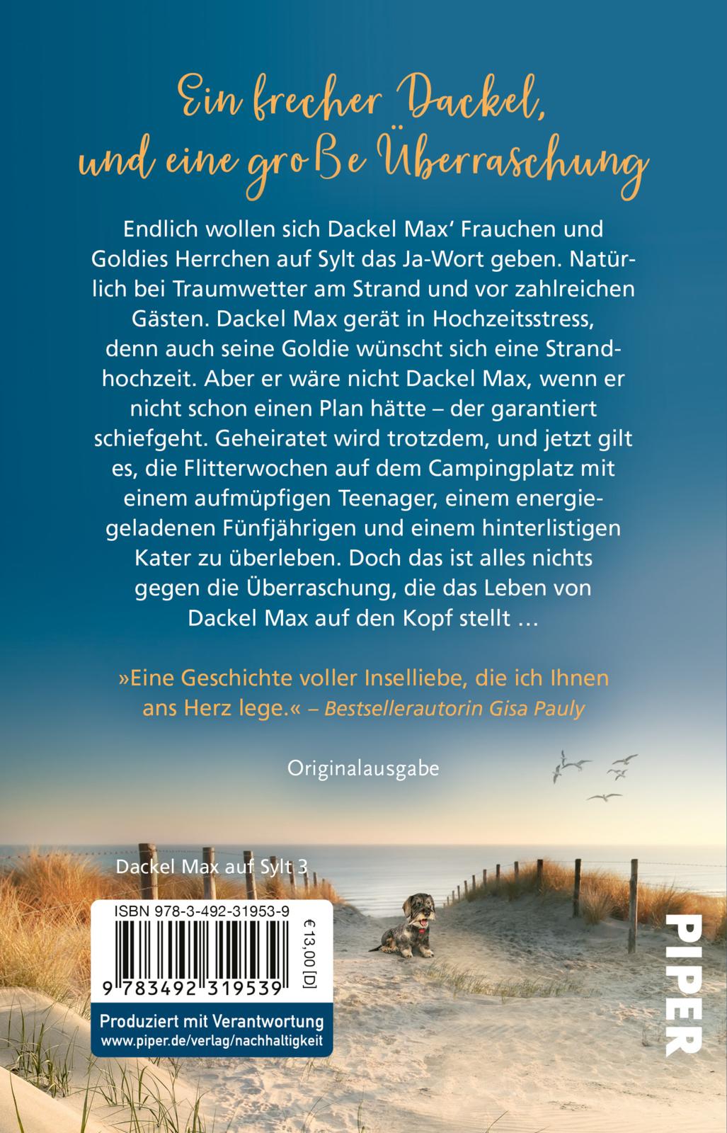 | Schlagworte | Dackelblick • Dackel Max • Gisa Pauly • heiterer Frauenroman • humorvolle Bücher • Hund als Romanheld • Hundebesitzer • Hundegeschichte • hund lustig • lustige Hundebücher • Sylt-Roman • Tiergeschichte Erwachsene • Urlaubsroman |