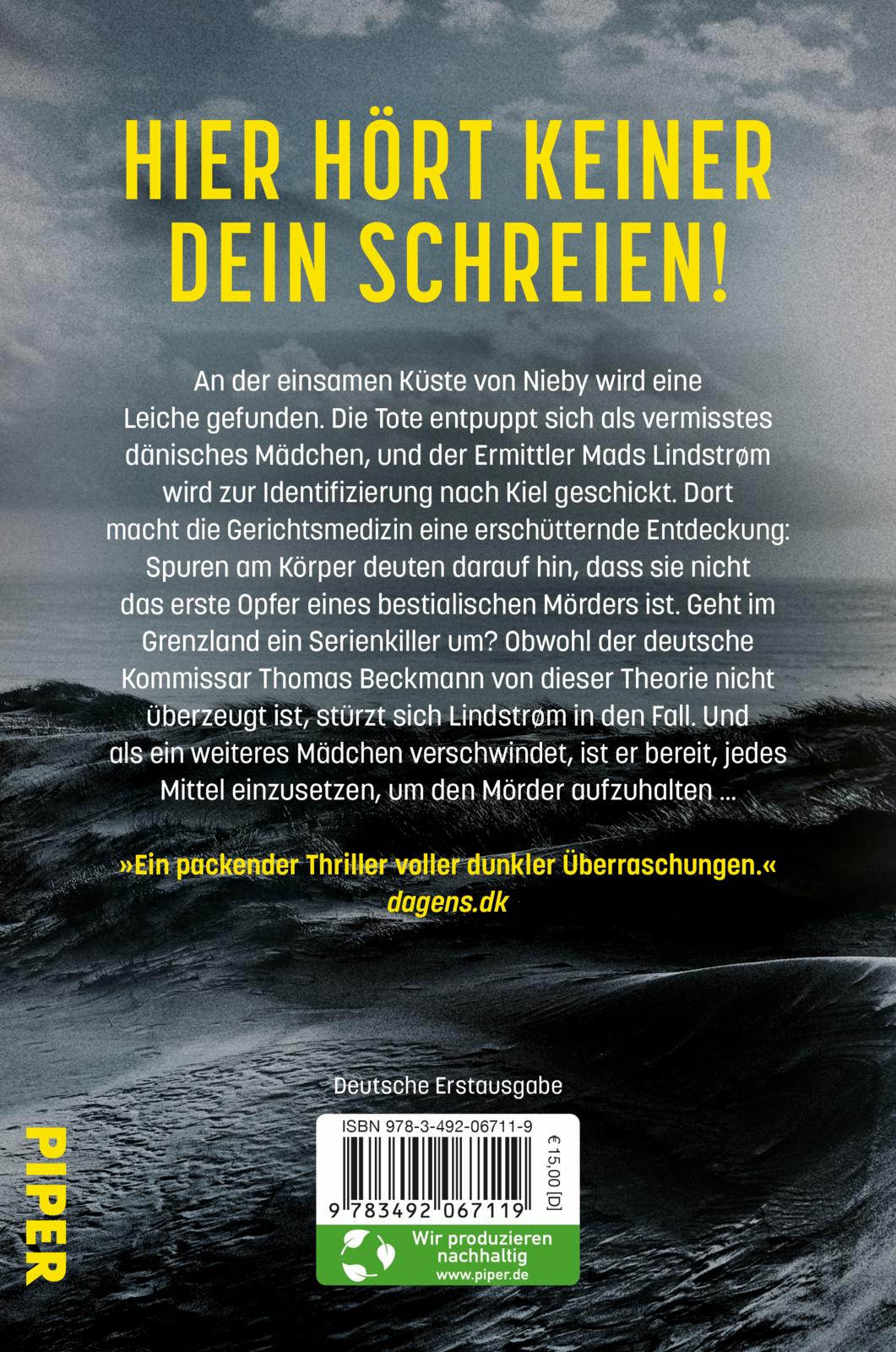 Es ist früher Morgen, als an der Küste von Nieby eine Leiche gefunden wird. Die Tote entpuppt sich als vermisste Dänin, und der Ermittler Mads Lindstrøm wird zur Identifizierung nach Kiel geschickt. Dort hat die Gerichtsmedizin eine erschütternde Entdeckung gemacht: Spuren an dem toten Mädchen deuten darauf hin, dass sie nicht das erste Opfer eines bestialischen Mörders ist.