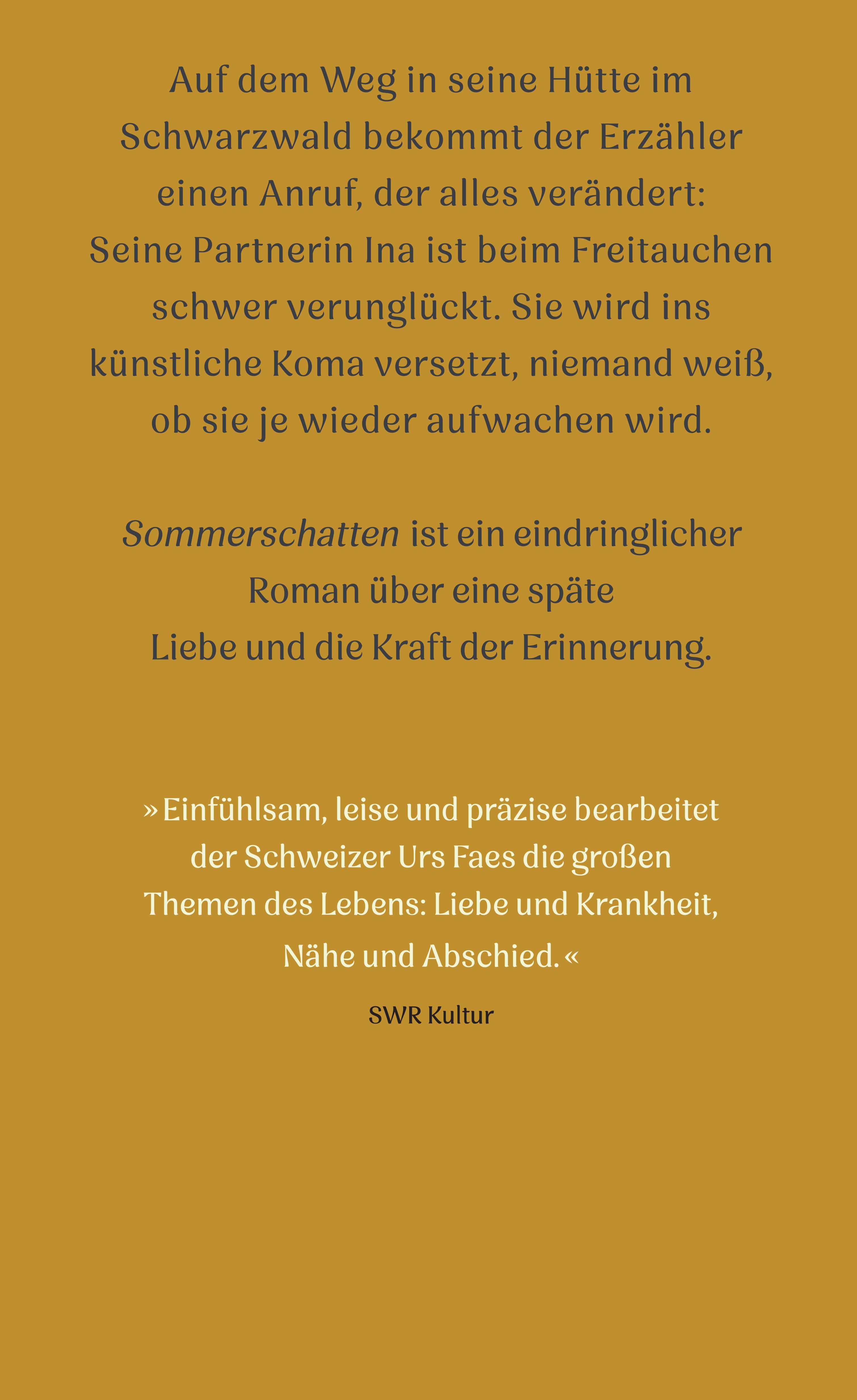 Sommerschatten ist ein einfühlsamer Roman über eine späte Liebe und die Kraft der Erinnerung. Als Brücke zurück in den Alltag, ins Leben.