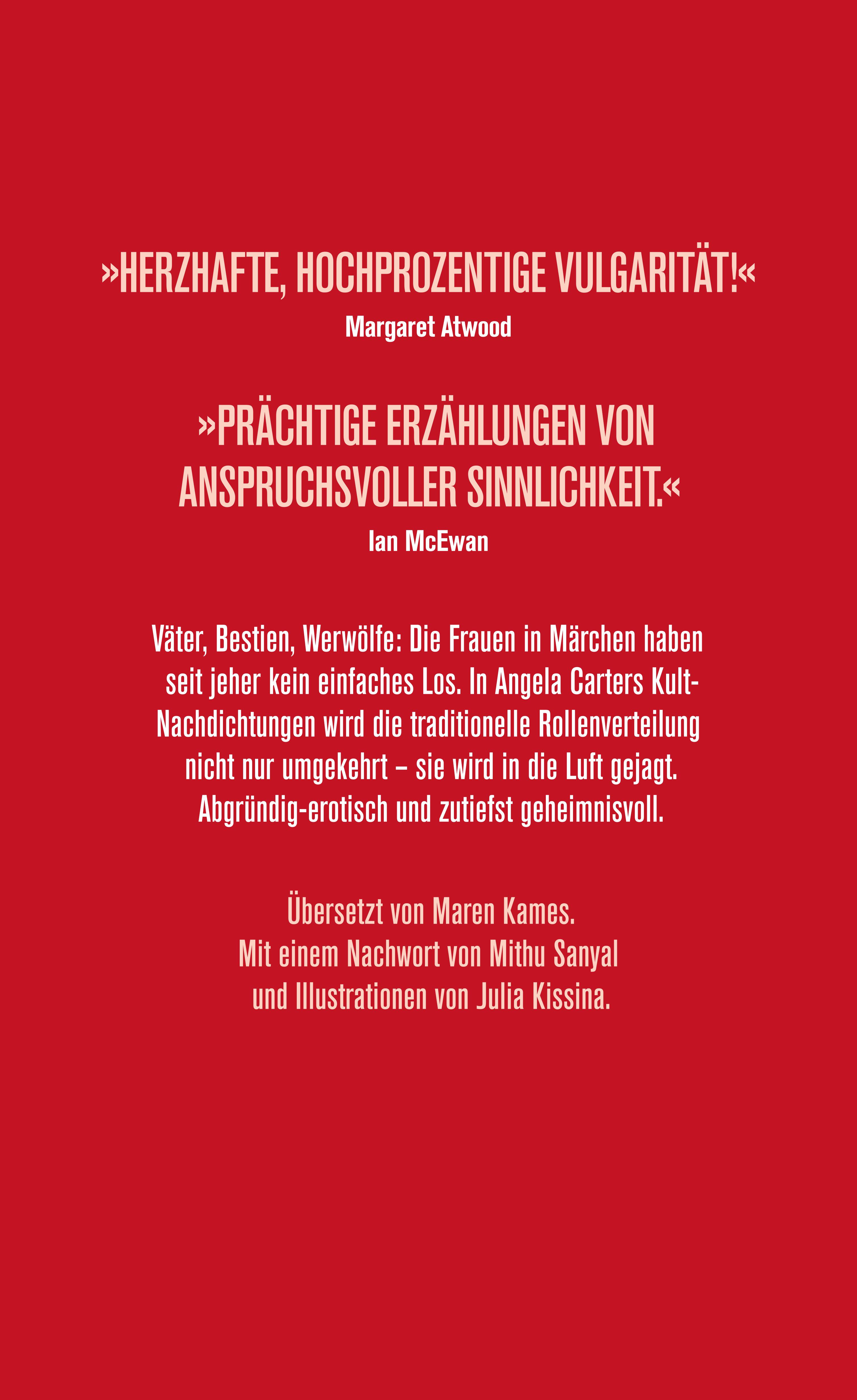 »... blutig-sinnliche Antimärchen-Hackebeil-Prosa. ... Mithu Sanyal hat zu Carters [Prosa] ein spritziges Nachwort beigesteuert und Julia Kissina stimmig schaurige Illustrationen.«