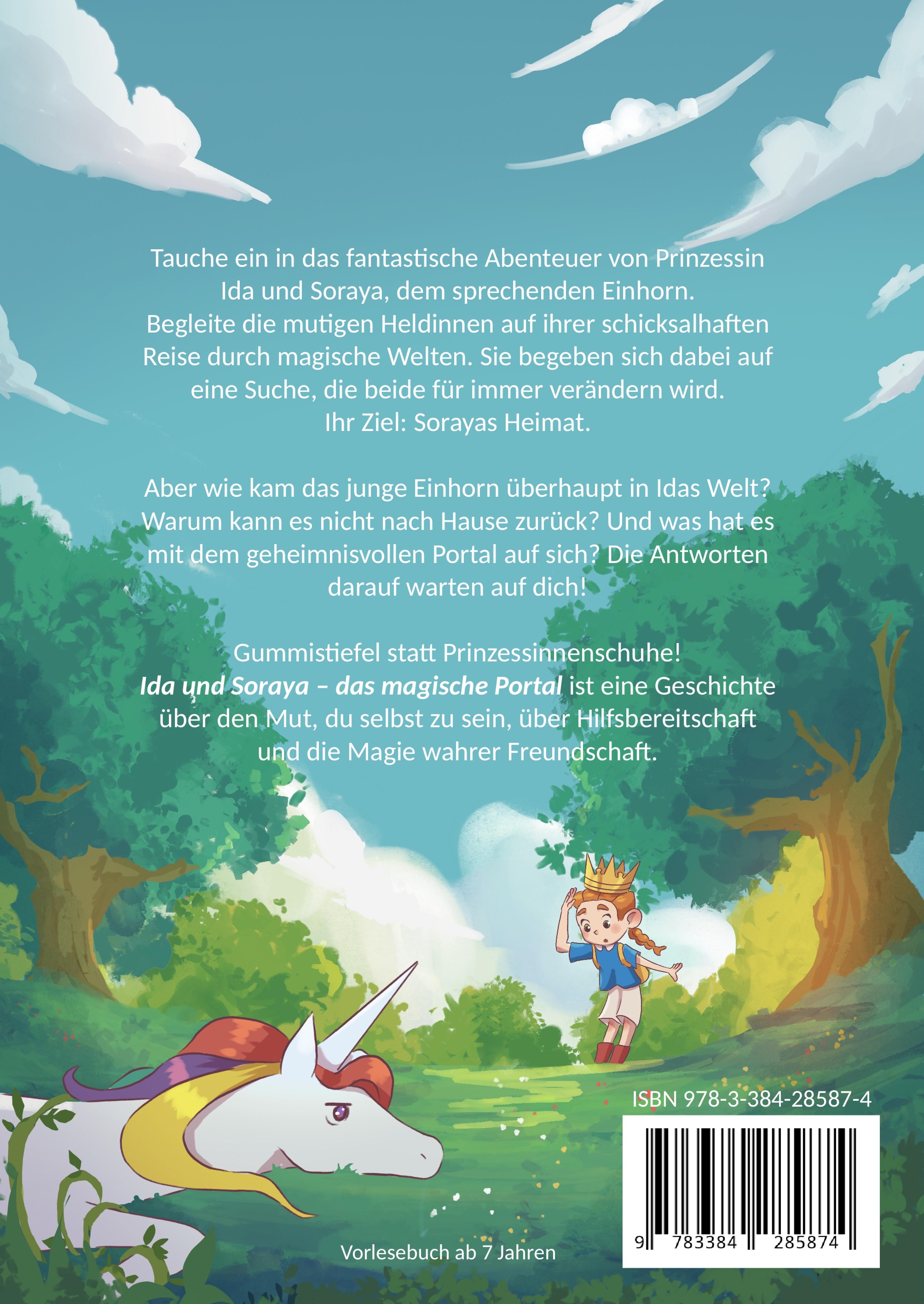 Gummistiefel statt Prinzessinnenschuhe! "Ida und Soraya - das magische Portal" ist ein fantastisches Vorlesebuch ab 7 Jahren. Liebevoll in Schwarz-Weiß illustriert und aufgeteilt in 19 Kapitel. Die spannende und humorvolle Geschichte handelt von dem Mut, du selbst zu sein, von Hilfsbereitschaft und von der Magie wahrer Freundschaft. Die junge Prinzessin Ida findet eines Tages auf einer geheimen Lichtung ein erschöpftes Einhorn namens Soraya. Soraya musste durch ein Portal aus ihrer Welt fliehen und findet nun nicht dorthin zurück. Begleite die beiden mutigen Heldinnen auf ihrer schicksalhaften Reise durch magische Welten. Sie begeben sich dabei auf eine Suche, die beide für immer verändern wird. Ihr Ziel: Tala, Sorayas Heimat.