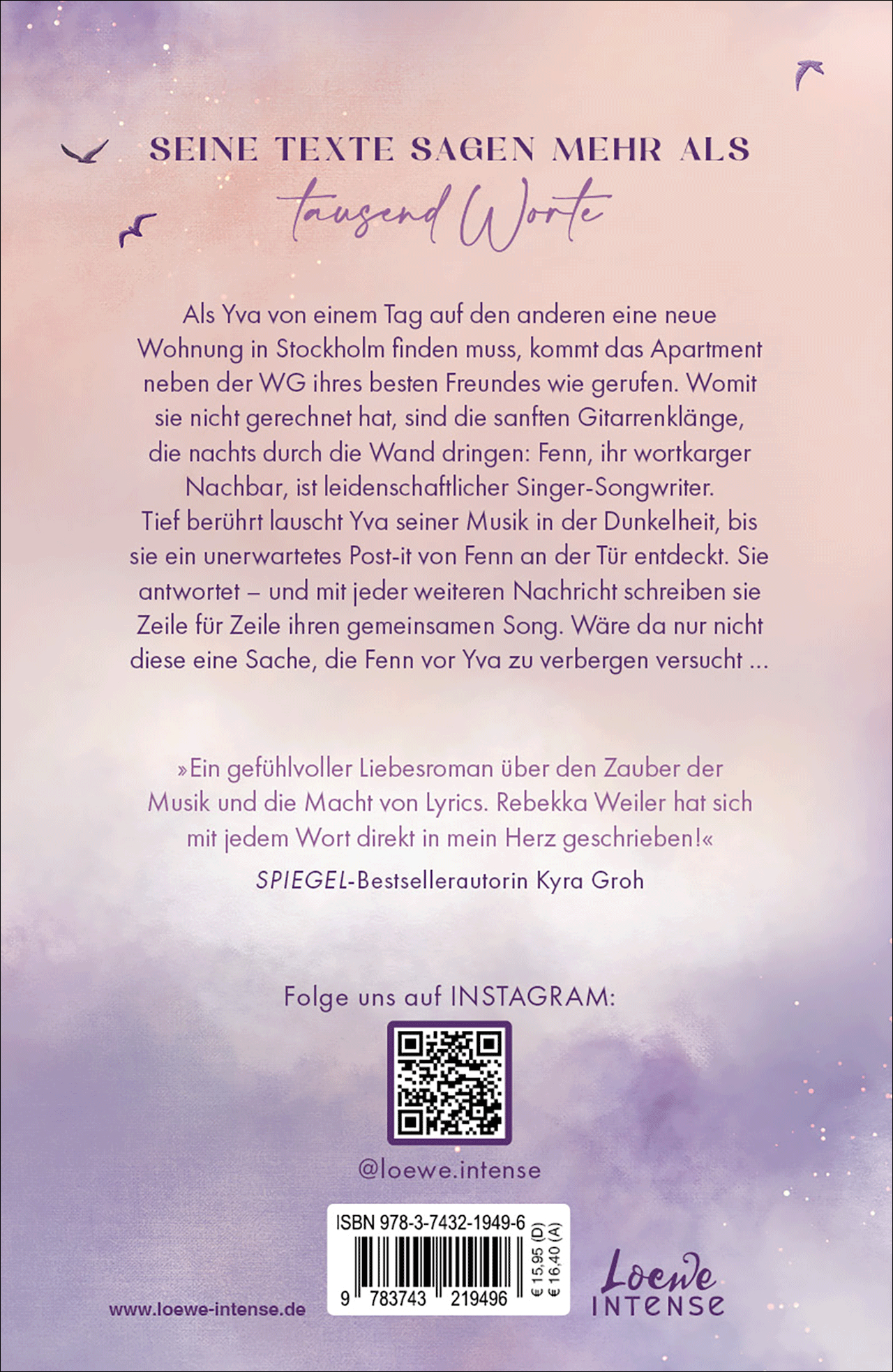 „Rebekka Weilers Schreibstil ist so gefühlvoll und atmosphärisch, dass man komplett in die Geschichte eintaucht. Yva und Fenn haben sich auch direkt in mein Herz geschlichen, ruhig, echt und mit so viel Tiefe.“ - alinamaglesen