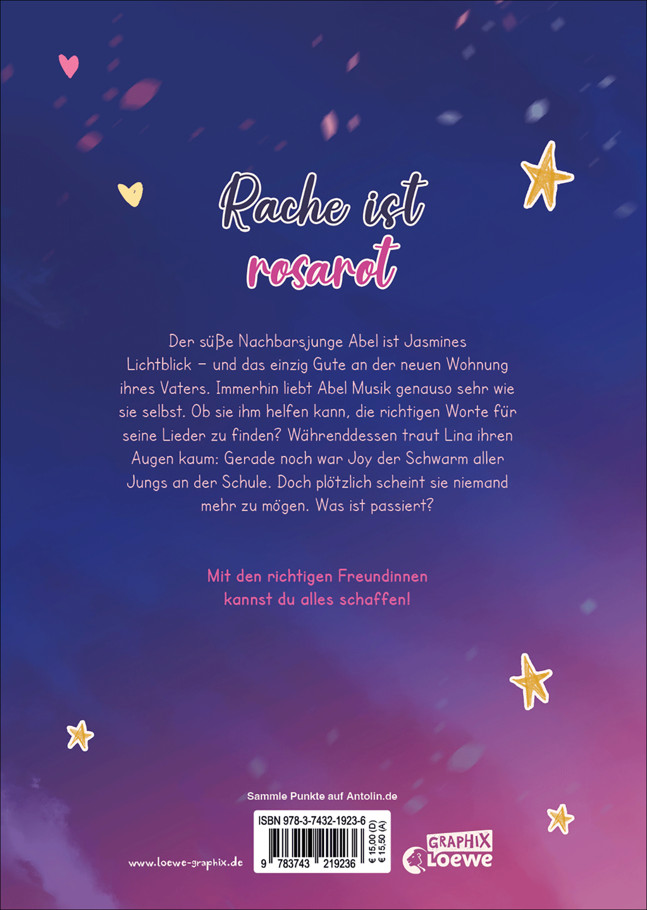 Liebe, Songs & beste Freundinnen Jasmine hasst alles daran, abwechselnd bei ihrer Mutter und ihrem Vater zu wohnen - bis auf den süßen Nachbarsjungen, der im Garten Gitarre spielt. Er schreibt eigene Lieder, nur die Texte sind einfach nicht seine Stärke. Ob Lina und Jasmine ihm da helfen können? Doch währenddessen hat Alex Joy als sein nächstes Opfer auserkoren. Gut, dass sie das nicht allein durchstehen muss. Wird sie es schaffen, ihm eine Lektion zu erteilen? In diesem gefühlvollen Comicbuch treffen starke Mädchen auf Musik, Street Art und echte Freundschaft - Herzklopfen garantiert!
