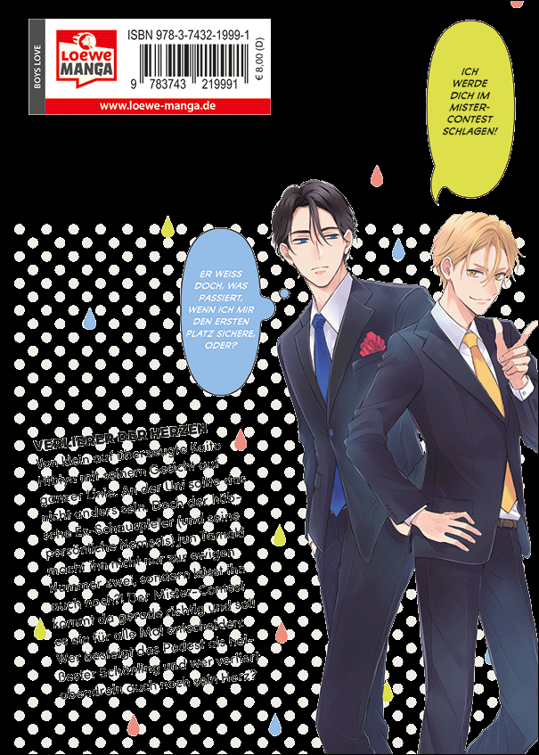 Von klein auf überzeugte Kaito Hibiya mit seinem Gesicht auf ganzer Linie. An der Uni sollte das nicht anders sein. Doch der hübsche Ex-Schauspieler (und seine persönliche Nemesis) Jun Tamaki macht ihn nicht nur zur ewigen Nummer zwei, sondern küsst ihn auch noch?! Der Mister-Contest kommt da gerade richtig und soll es ein für alle Mal entscheiden: Wer besteigt das Podest als heißester Schönling und wer verliert obendrein auch noch sein Herz?