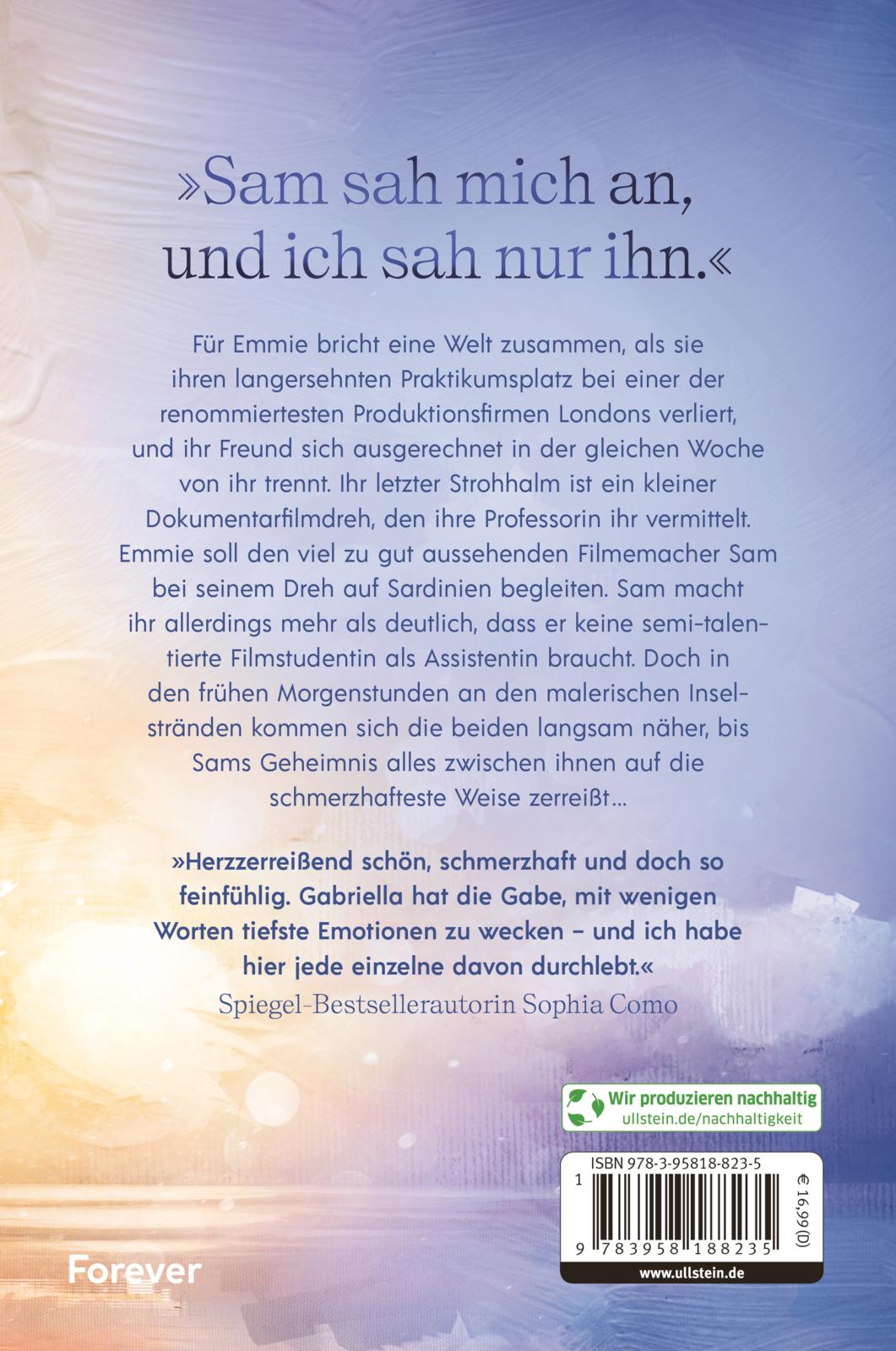 Für Emmie bricht eine Welt zusammen, als sie ihren langersehnten Praktikumsplatz bei einer der renommiertesten Produktionsfirmen Londons verliert, und ihr Freund sich ausgerechnet in der gleichen Woche von ihr trennt. Ihr letzter Strohhalm ist ein kleiner Dokumentarfilmdreh, den ihre Professorin ihr vermittelt. Emmie soll den viel zu gut aussehenden Filmemacher Sam bei seinem Dreh auf Sardinien begleiten. Sam macht ihr allerdings mehr als deutlich, dass er keine semi-talentierte Filmstudentin als Assistentin braucht. Doch in den frühen Morgenstunden an den malerischen Inselstränden kommen sich die beiden langsam näher, bis Sams Geheimnis alles zwischen ihnen auf die schmerzhafteste Weise zerreißt ...
