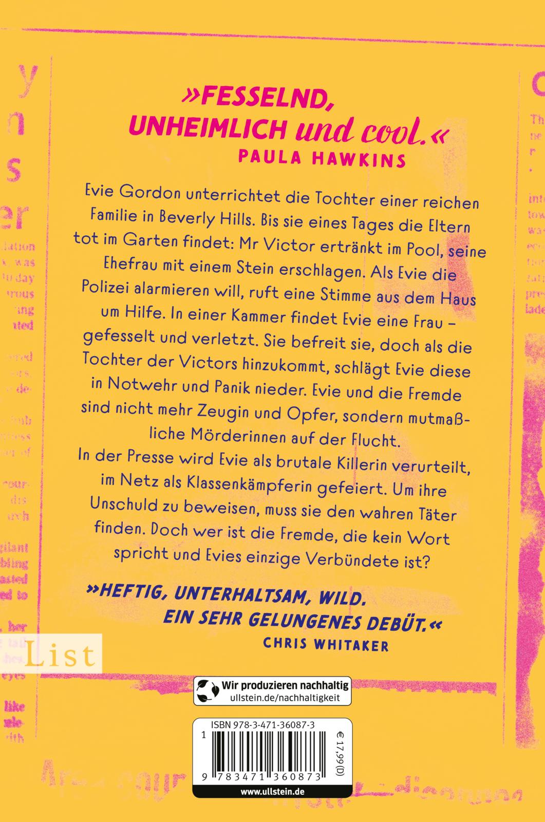 In der Presse wird Evie als brutale Killerin verurteilt, im Netz als Klassenkämpferin gefeiert. Um ihre Unschuld zu beweisen, muss sie den wahren Täter finden. Doch wer ist die Fremde, die kein Wort spricht und ab sofort Evies einzige Verbündete ist?