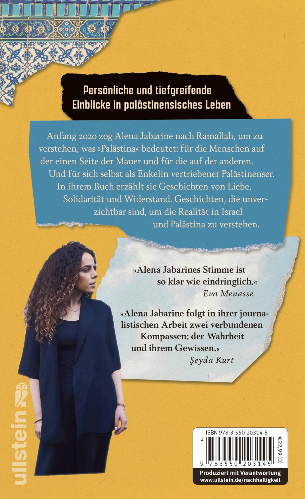 Anfang 2020 zog Jabarine nach Ramallah, um zu verstehen, was »Palästina« bedeutet: für die Menschen auf der einen Seite der Mauer und für die auf der anderen. Und für ihre eigene Identität. In ihrem Buch erzählt sie Geschichten von Menschlichkeit und Lebensfreude, aber auch von Widerstand. Geschichten, die dabei helfen, die Realität in Israel und Palästina zu verstehen.