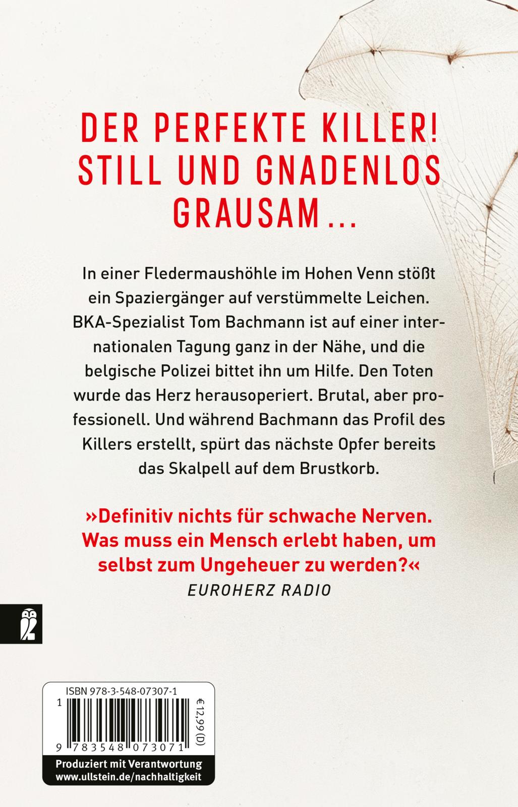 BKA-Spezialist Tom Bachmann ist auf einer internationalen Tagung in Belgien, als Wanderer im Hohen Venn einen Leichenfund melden. Ihr Hund hat sie zu der Fledermaushöhle geführt, wo der grausige Anblick der verstümmelten Leichen sie zutiefst schockiert. Bachmann und sein BKA-Team werden von den örtlichen Behörden um Amtshilfe gebeten. Den Toten wurde das Herz herausgerissen. Und während Bachmann das Profil des Killers erstellt, spricht der sein nächstes Opfer an.