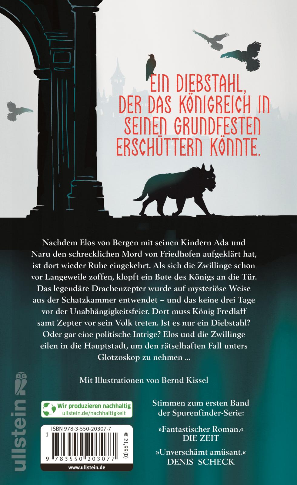 Nachdem der Spurenfinder Elos von Bergen zusammen mit seinen Kindern Ada und Naru den schrecklichen Mord am Dorfvorsteher aufgeklärt hat, ist Ruhe eingekehrt in Friedhofen. Die Zwillinge beginnen sich schon wieder zu zoffen, so langweilig ist ihnen, da klopft zum Glück ein Bote König Fredlaffs an die Tür. Das legendäre Zepter der Ahnen wurde unter unerklärlichen Umständen aus der königlichen Schatzkammer entwendet - und das keine drei Tage vor der Unabhängigkeitsfeier, bei der Fredlaff samt Zepter vor sein Volk treten muss. Ist es nur ein Diebstahl oder verbirgt sich mehr dahinter? Gar eine politische Intrige? Elos und die Zwillinge eilen in die Hauptstadt, um den mysteriösen Fall unters Glotzoskop zu nehmen ...