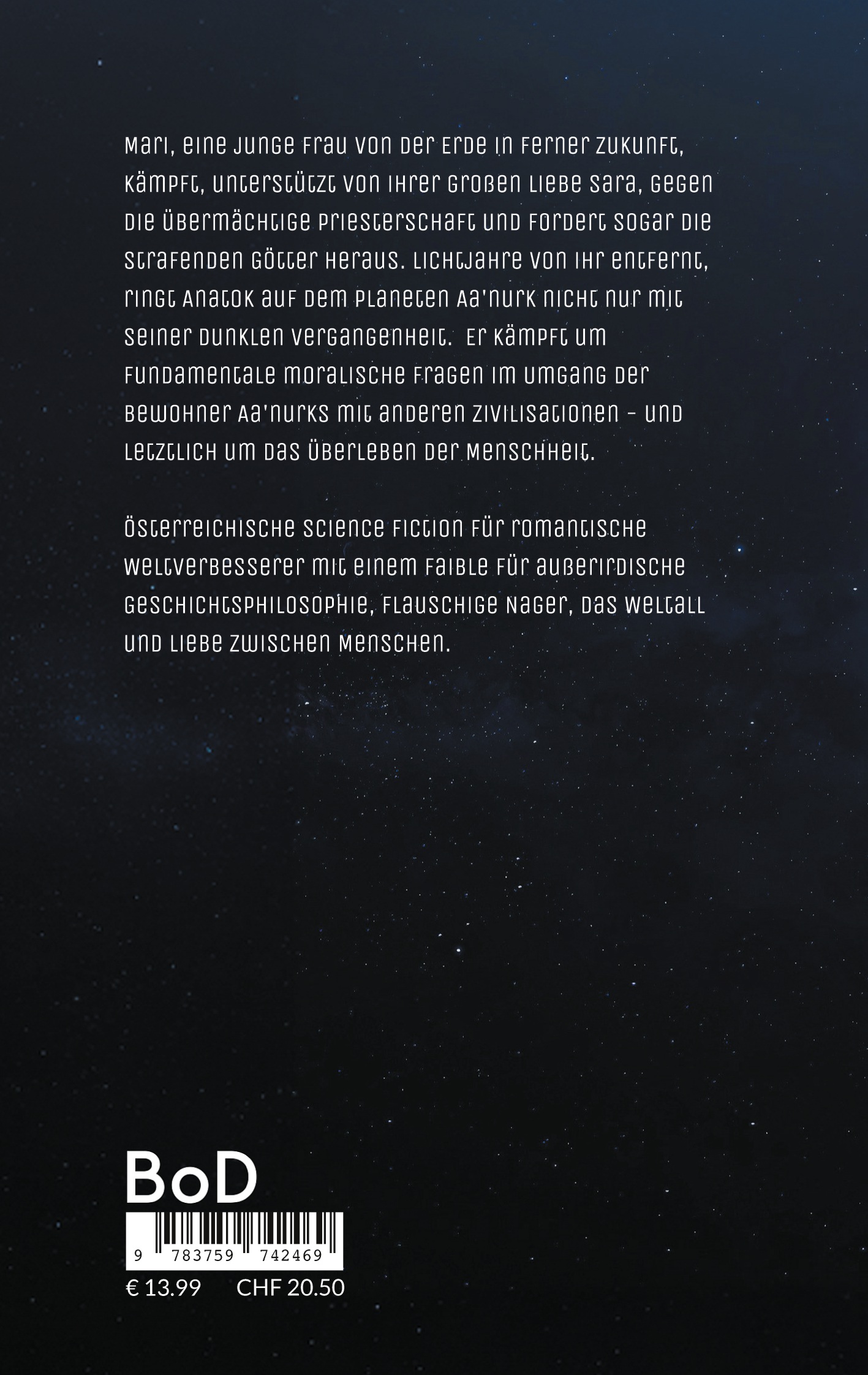 Österreichische Science Fiction für romantische Weltverbesserer mit einem Faible für außerirdische Geschichtsphilosophie, Berge, flauschige Nager, das Weltall und Liebe zwischen Menschen.