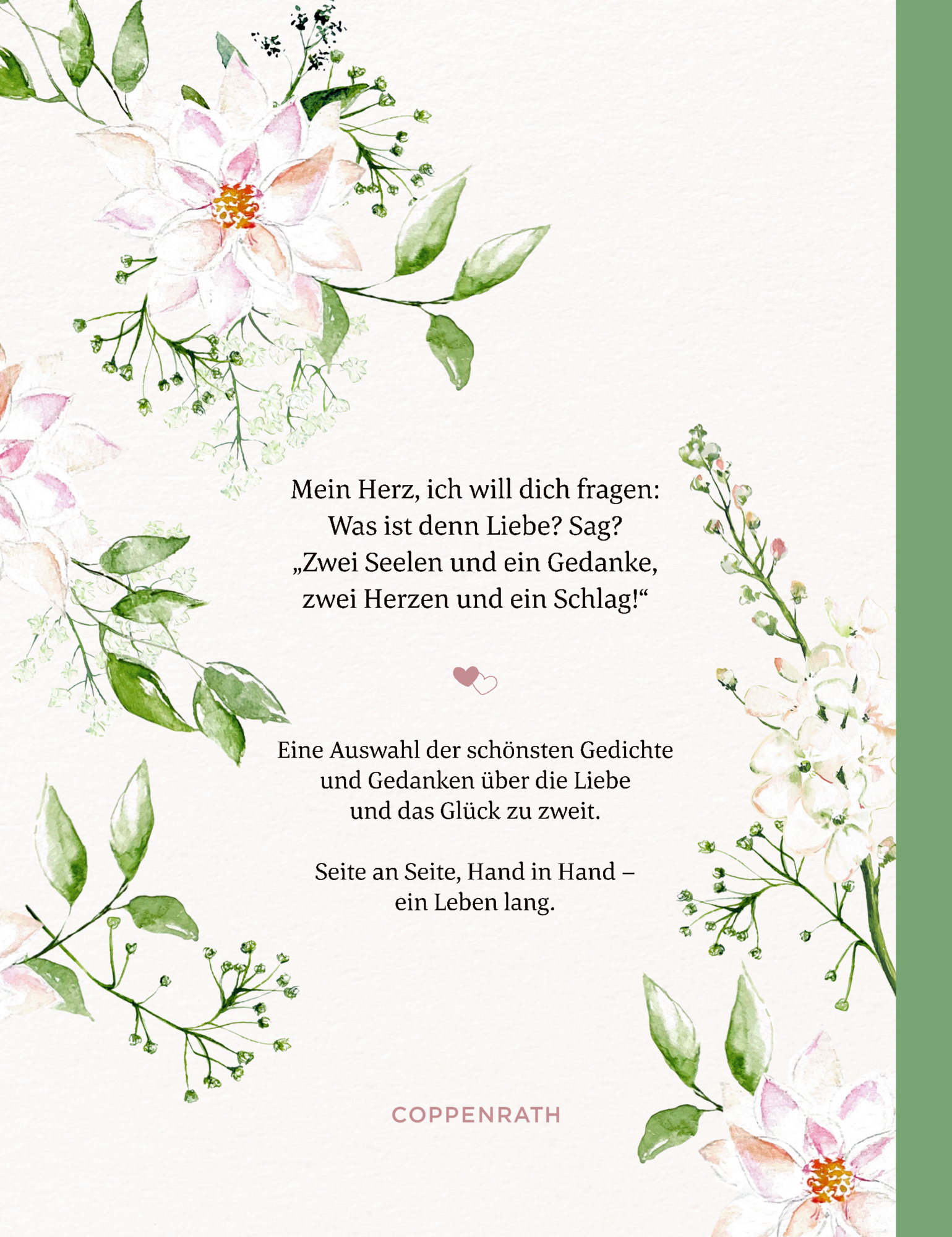Ein wundervolles Geschenk für alle, denen wir zur Hochzeit das Beste wünschen. Eine Auswahl der schönsten Gedichte und Gedanken über das Glück zu zweit lädt dazu ein, den schönsten Tag im Leben und die Liebe in all ihren Facetten zu feiern. Berührend und inspirierend begleitet dieses liebevoll gestaltete Buch das Brautpaar auf seiner Reise in die gemeinsame Zukunft.