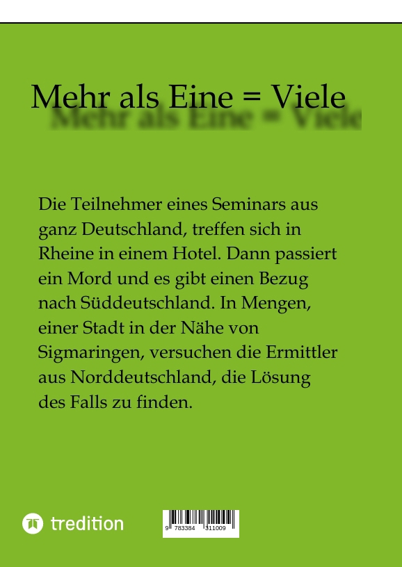 | Schlagworte | Bizarre Morde • Gefühle • Orte: Mengen, Scheer, Riedlingen usw. • Psychothriller • Spannung • überraschende Wendungen |