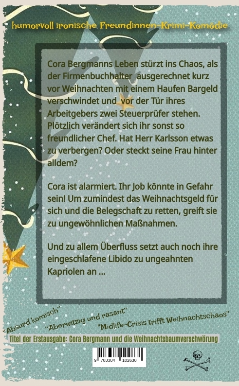 - humorvoll ironische Freundinnen-Krimi-Komödie -Cora Bergmanns Leben stürzt ins Chaos, als der Firmenbuchhalter ausgerechnet kurz vor Weihnachten mit einem Haufen Bargeld verschwindet und zwei Steuerprüfer vor der Tür ihres Arbeitsgebers stehen. Plötzlich verändert sich ihr sonst so freundlicher Chef. Hat Herr Karlsson etwas zu verbergen? Oder steckt seine Frau hinter alldem? Cora ist alarmiert. Ihr Job könnte in Gefahr sein! Um zumindest das Weihnachtsgeld für sich und die Belegschaft zu retten, greift sie zu ungewöhnlichen Maßnahmen. Und zu allem Überfluss setzt auch noch ihre eingeschlafene Libido zu ungeahnten Kapriolen an ...Titel der Erstausgabe: Cora Bergmann und die Weihnachtsbaumverschwörung