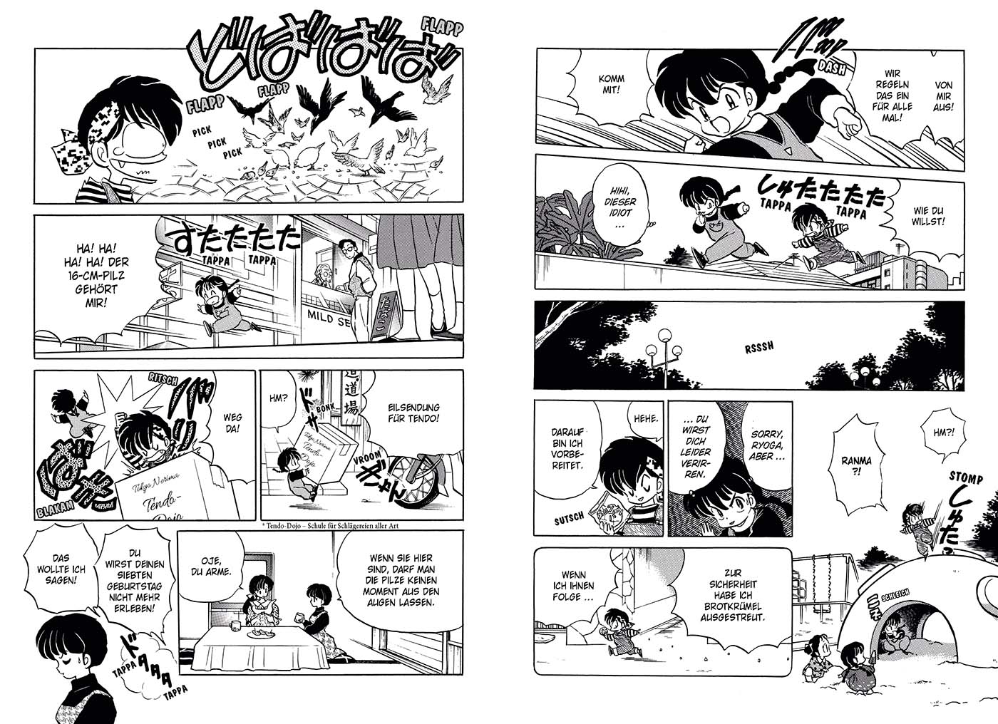 Ranma Saotome ist ein ganz normaler Teenager, abgesehen von seinen hervorragenden Kampfkünsten ... und dieser einen merkwürdigen Sache: Er verwandelt sich in ein Mädchen, sobald er mit kaltem Wasser in Berührung kommt. Aber als ob das noch nicht genug wäre, hat sein Vater seine Verlobung für ihn arrangiert. Gar nicht so leicht für Ranma, denn seine zukünftige Verlobte ist begehrt – genau wie sein weibliches Ich.
