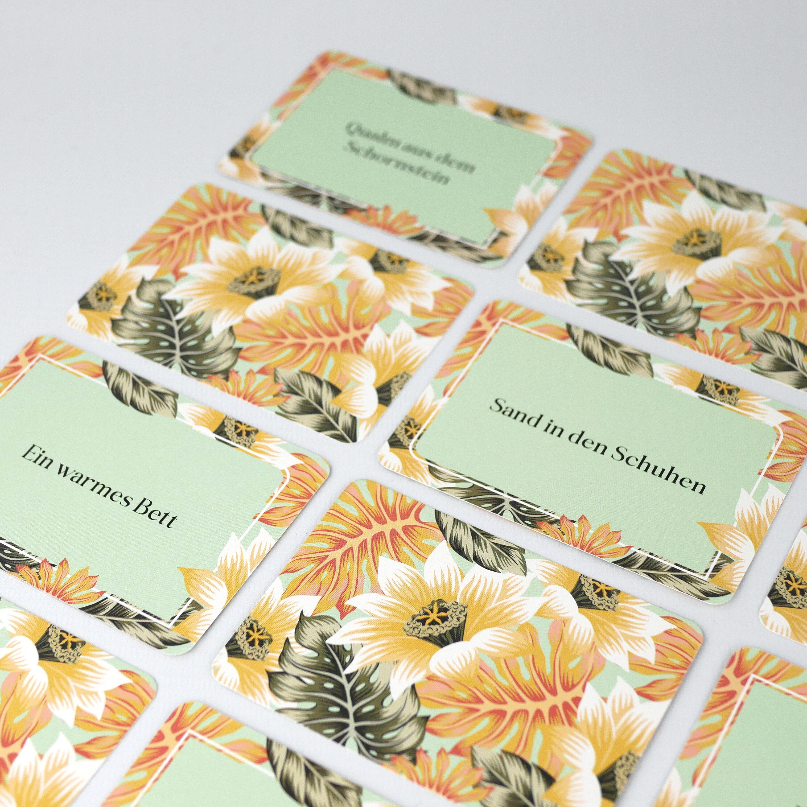 Versüße deinen Alltag mit ein bisschen Poesie!Dieses Kartendeck bietet dir mit über 60 Versbausteinen die Möglichkeit, zahlreiche unterschiedliche Gedichte zu kreieren. Ziehe einfach drei bis vier Karten, lies das so entstandene Ergebnis und lasse es auf dich wirken. Ob du die Gedichte allein, zu zweit oder in einer größeren Gruppe legst - sie regen zum Nachdenken und Austauschen an und fördern die Kreativität. Und wer weiß, vielleicht inspiriert dich das Kartendeck ja dazu, eigene Gedichte zu schreiben.