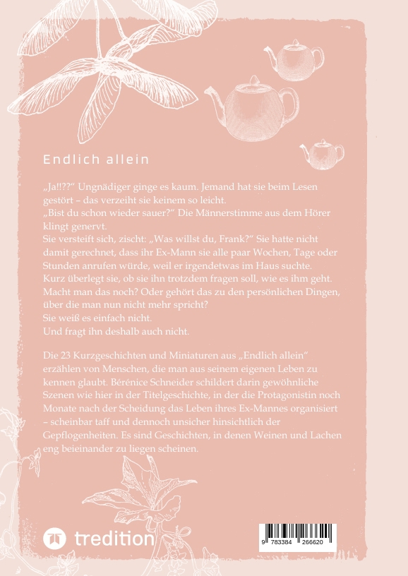 | Schlagworte | Alltagsszenen • Beziehungsgeschichten • Kurzgeschichten • Lebensprall • realistisch • Stimmungsvoll • Unterhaltung • Wohlfühlliteratur |