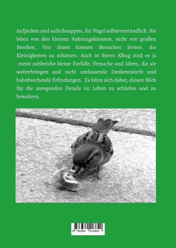 Es geht im Buch um Denken, Nachdenken und Zu-ende-denken. Das Buch will dafür werben, wach durchs Leben zu gehen und sich vor allem was begegnet zu Denken anregen zu lassen, statt sich, wie verbreitet, zugestöpselt und pausenlos handyaktiv besetzen zu lassen.