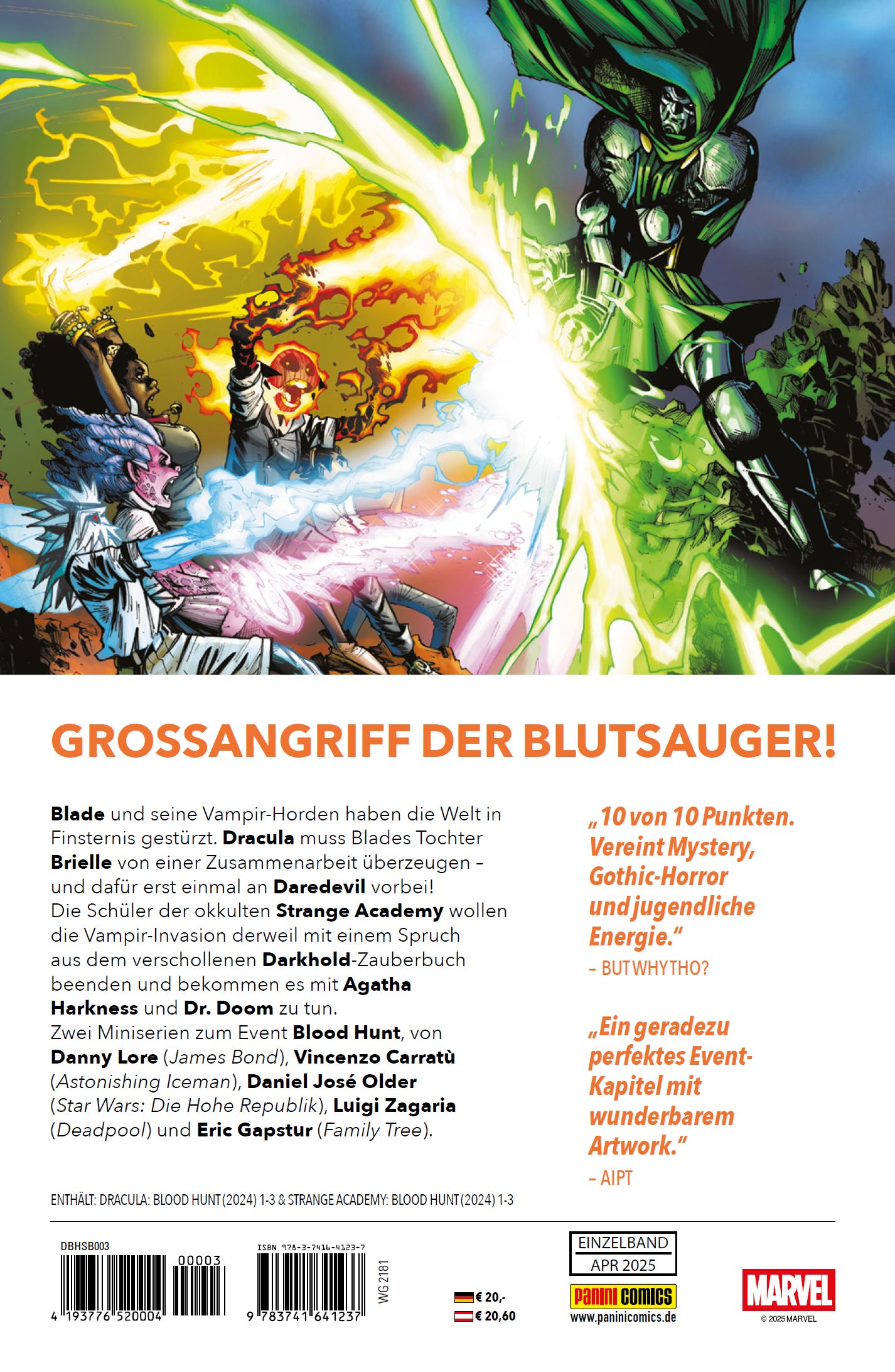 | Schlagworte | Agatha Harkness • Blade • Blood Hunt • Brielle • Comic • Comics • Daredevil • Darkhold • Dracula • Dr. Doom • Einzelband • F25 • Jack the Ripper • Marvel • Marvel-Held • Marvel-Helden • Marvel Superheld • Marvel-Superheld • Panini • Paninicomics • Panini Comics • Strange Academy • Superheld • Superhelden • Vampire |