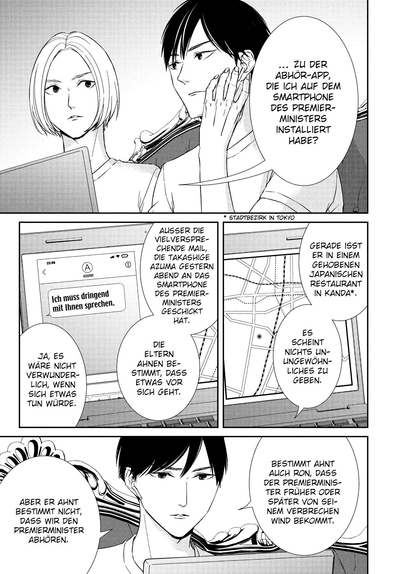 Premierminister Ohsu, dessen Sohn die Schuld für das Bombenattentat auf das Tetra-Gebäude in Shinjuku trägt, findet heraus, dass Ichirou und Shirou der Wahrheit auf der Spur sind. Ohsu, der eine Liebesbeziehung mit Shirou pflegt, versucht ihn davon abzubringen, um seinen Sohn sowie seine Machtposition zu schützen. Ron Aterov, ein Spion aus dem Land B, der daran ist, die Verantwortlichen für das Attentat nacheinander auszulöschen, droht Ichirou damit, seinen Liebsten etwas anzutun.