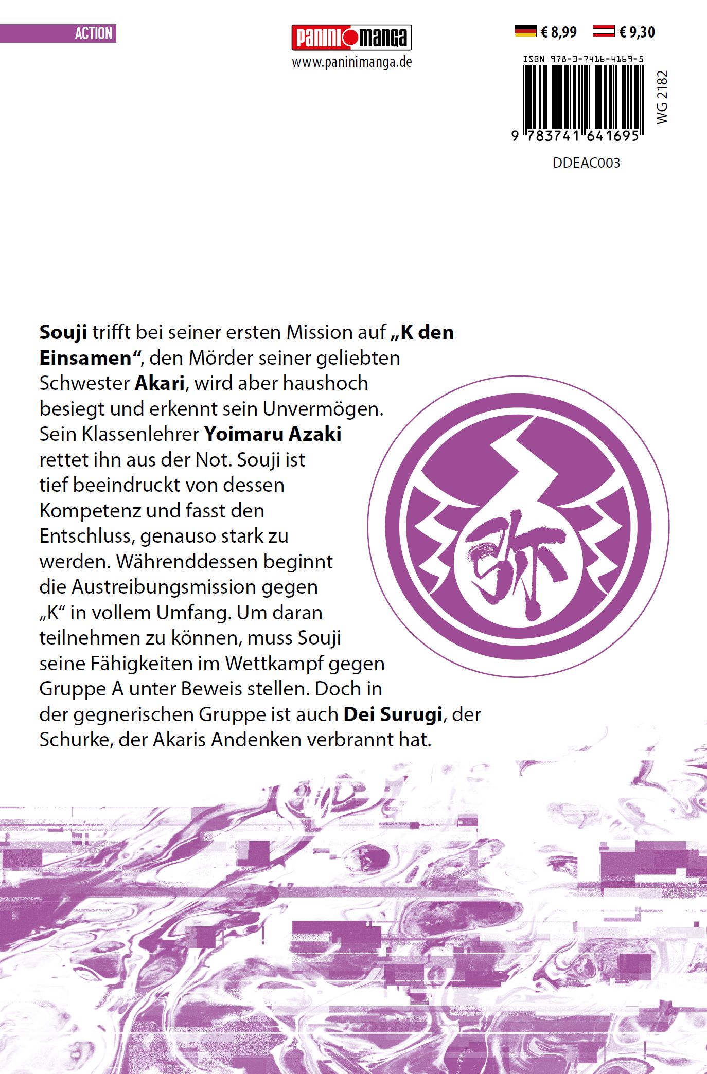 Souji trifft bei seiner ersten Mission „K der Einsame“, den Mörder seiner geliebten Schwester Akari, wird aber haushoch besiegt und erkennt sein Unvermögen. Sein Klassenlehrer Yoimaru Azaki rettet ihn aus der Not. Souji ist tief beeindruckt von dessen Kompetenz und fasst den Entschluss, genauso stark zu werden. Währenddessen beginnt die Austreibungs-Mission gegen „K“ in vollem Umfang. Um daran teilnehmen zu können, muss Souji seine Fähigkeiten im Wettkampf gegen Gruppe A unter Beweis stellen. Doch in der gegnerischen Gruppe ist auch Dei Surugi, der Schurke, der Akaris Andenken verbrannt hat.