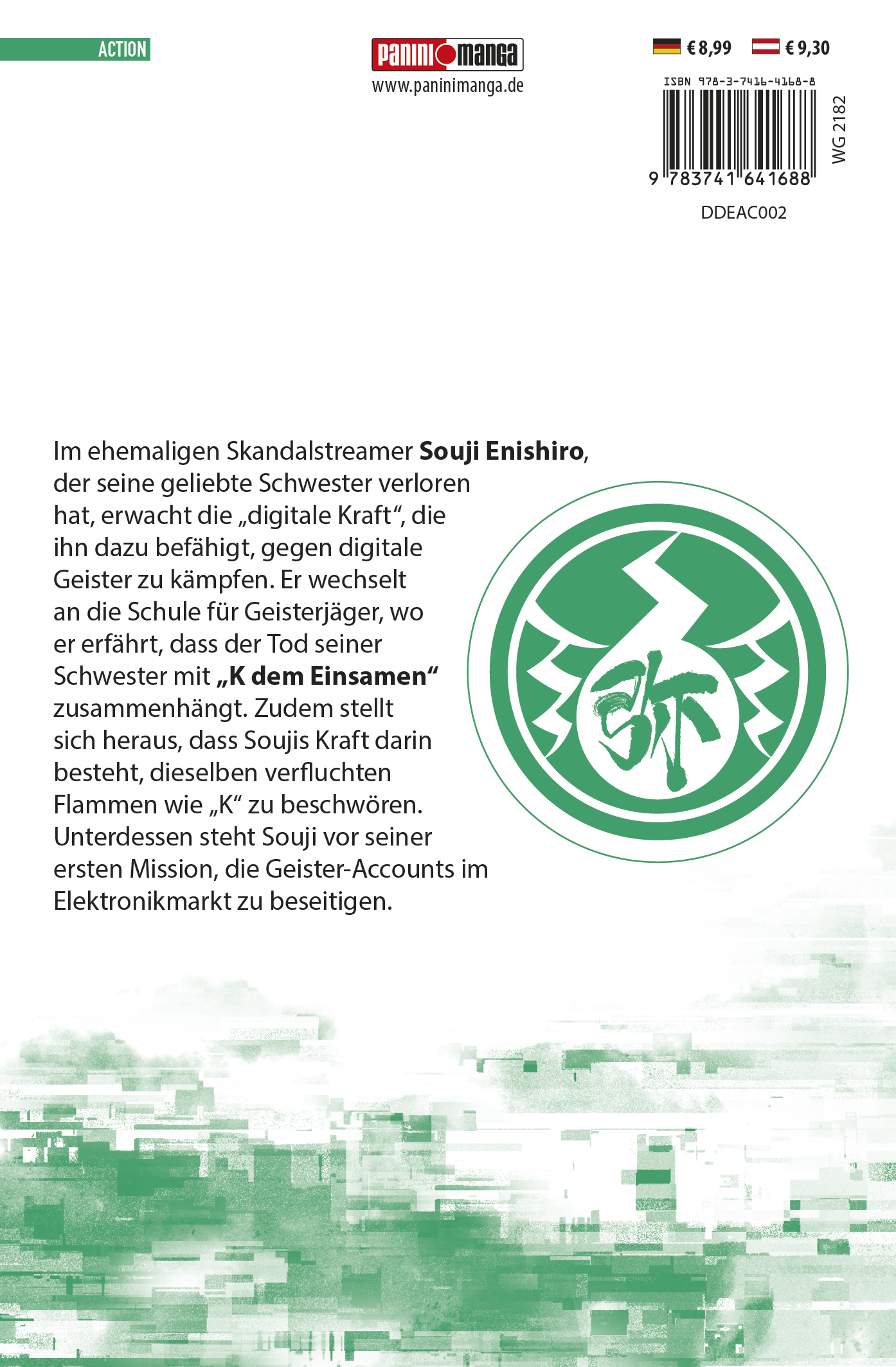 Die Geister von heute hausen in Smartphones! Vielleicht auch in deinem ... Streitlustig und zerstörungsfreudig: Das ist der 15-jährige Souji Enishiro, besser bekannt als "Aoringo", ein berüchtigter Streamer, der durch schockierende Videos Geld scheffelt. Für die Gesellschaft ist er die reinste Plage, aber in Wirklichkeit ist er ein herzensguter Junge, der seine Schwester Akari und Süßigkeiten über alles liebt. Seine Skandalvideos dienen nur dazu, die teuren Behandlungskosten seiner kranken Schwester zu decken. Solange sie gesund ist, ist Souji glücklich - selbst wenn die ganze Welt ihn hasst. Doch dann widerfährt Akari ein Unglück ... Das erwartet dich in Band 2:Im ehemaligen Skandalstreamer Souji Enishiro, der seine geliebte Schwester verloren hat, erwacht die "digitale Kraft", die ihn dazu befähigt, gegen digitale Geister zu kämpfen. Er wechselt an die Schule für Geisterjäger, wo er erfährt, dass der Tod seiner Schwester mit "K dem Einsamen" zusammenhängt. Zudem stellt sich heraus, dass Soujis Kraft darin besteht, dieselben verfluchten Flammen wie "K" zu beschwören. Unterdessen steht Souji vor seiner ersten Mission, die Geister-Accounts im Elektronikmarkt zu beseitigen.Die Mission lautet: Vertreibe die digitalen Geister in diesem Schul-Geister-Battle-Fantasy-Manga!Für Fans von Twin Star Exorcists, Blue Exorcist und Actiontiteln wie Naruto, Jujutsu Kaisen und My Hero Academia.