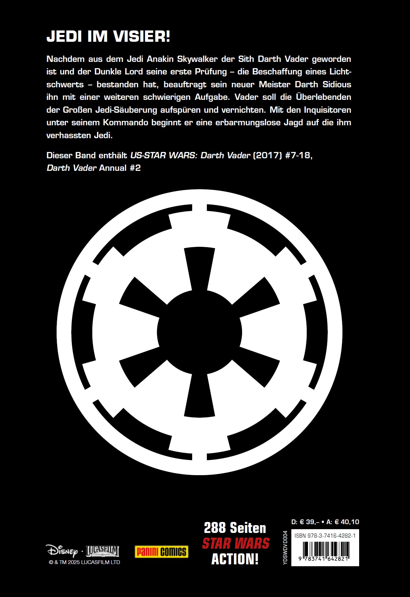JEDI IM VISIER!Nachdem aus dem Jedi Anakin Skywalker der Sith Darth Vader geworden ist und der Dunkle Lord seine erste Prüfung - die Beschaffung eines Lichtschwerts - bestanden hat, beauftragt sein neuer Meister Darth Sidious ihn mit einer weiteren schwierigen Aufgabe. Vader soll die Überlebenden der Großen Jedi-Säuberung aufspüren und vernichten. Mit den Inquisitoren unter seinem Kommando beginnt er eine erbarmungslose Jagd auf die ihm verhassten Jedi.Dieser Band enthält US-STAR WARS: Darth Vader (2017) #7-18, Darth Vader Annual #2