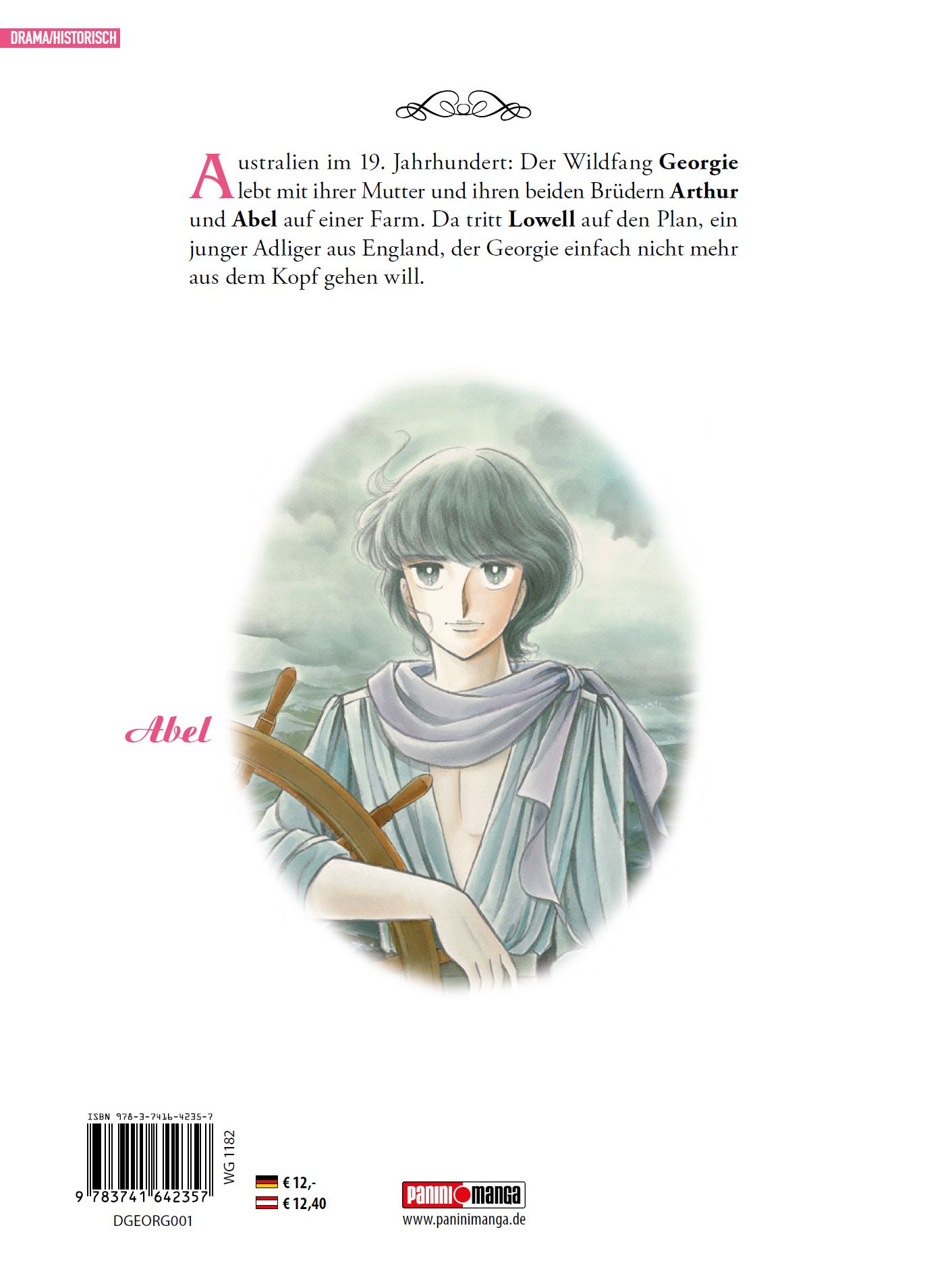 Georgie, ein mutiges Mädchen, lebt mit ihrer Familie auf einer großen Farm in Australien. Sie liebt ihre Brüder Abel und Arthur und trägt ein Armband, das ein großes Geheimnis birgt. Bald wird dieses Geheimnis ihr Leben auf den Kopf stellen. Das erwartet dich in Band 1: Australien im 19. Jahrhundert: Der Wildfang Georgie lebt mit ihrer Mutter und ihren beiden Brüdern Arthur und Abel auf einer Farm. Da tritt Lowell auf den Plan, ein junger Adliger aus England, der Georgie einfach nicht mehr aus dem Kopf gehen will.Das Manga-Original zum Kult-Anime, der die Herzen eroberte!