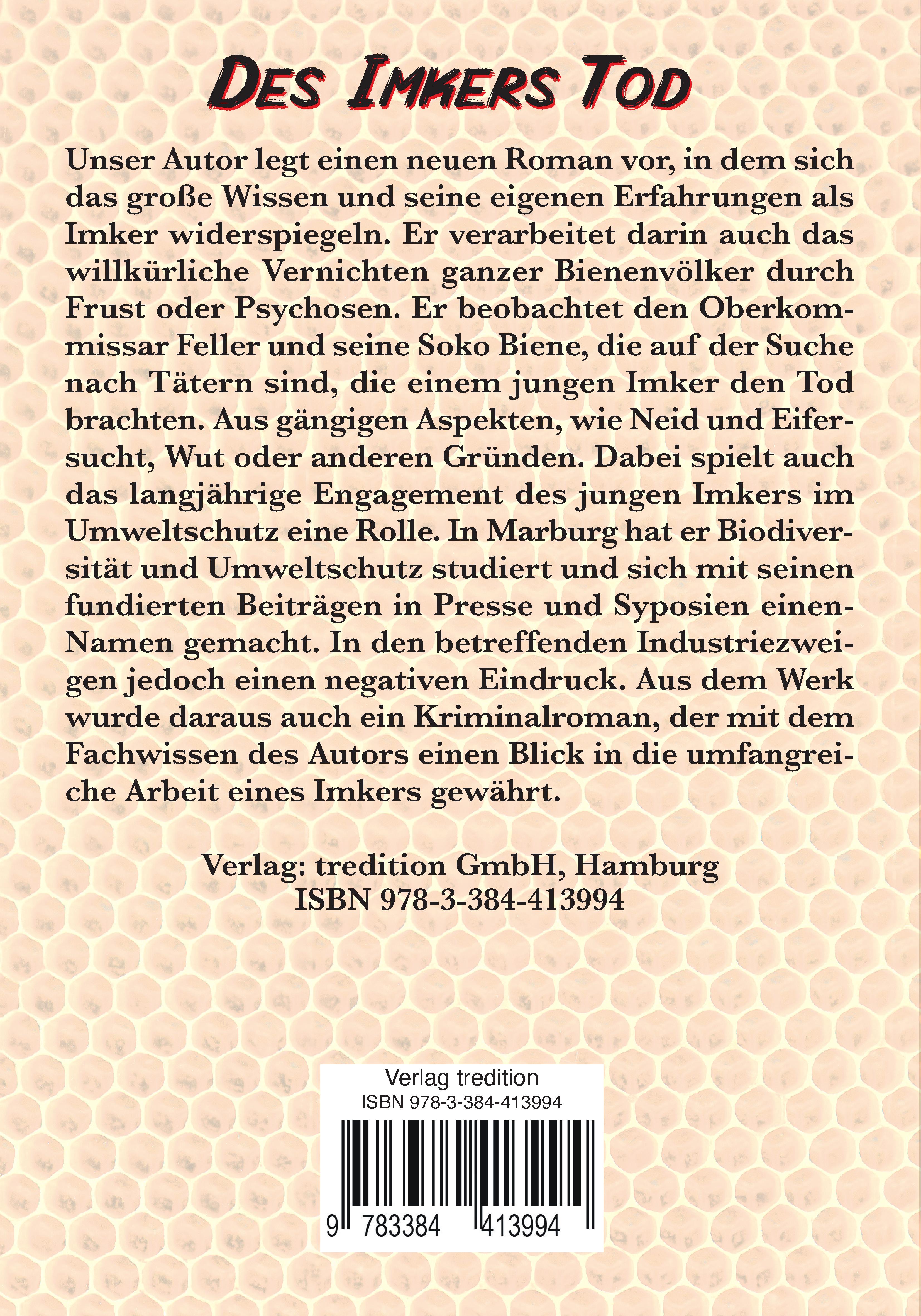 Der weltberühmte spanische Gitarrenvirtuose gerät durch wahnsinnige Verlustangst in psychotische Zustände. Er zerstört am vermeintlichen Ort dieses Verlustes in psychotischem Zwang viele Bienenvölker und flieht danach, die Verfolgung fürchtend ins Ausland. Auch dort treten die Psychosen wieder auf, da der vermutete Verlust nicht geklärt ist. Über die Schweiz findet er in Deutschland - einem Ort am Bodensee - Zuflucht in einem Pfarrhaus. Als ein junger Imker gewaltsam zu Tode kommt, wird der Spanier verdächtigt. Seine Umschuld wird bewiesen und andere Verdächtige geraten ins Visir der in Friedrichshafen gegründeten Soko Biene.