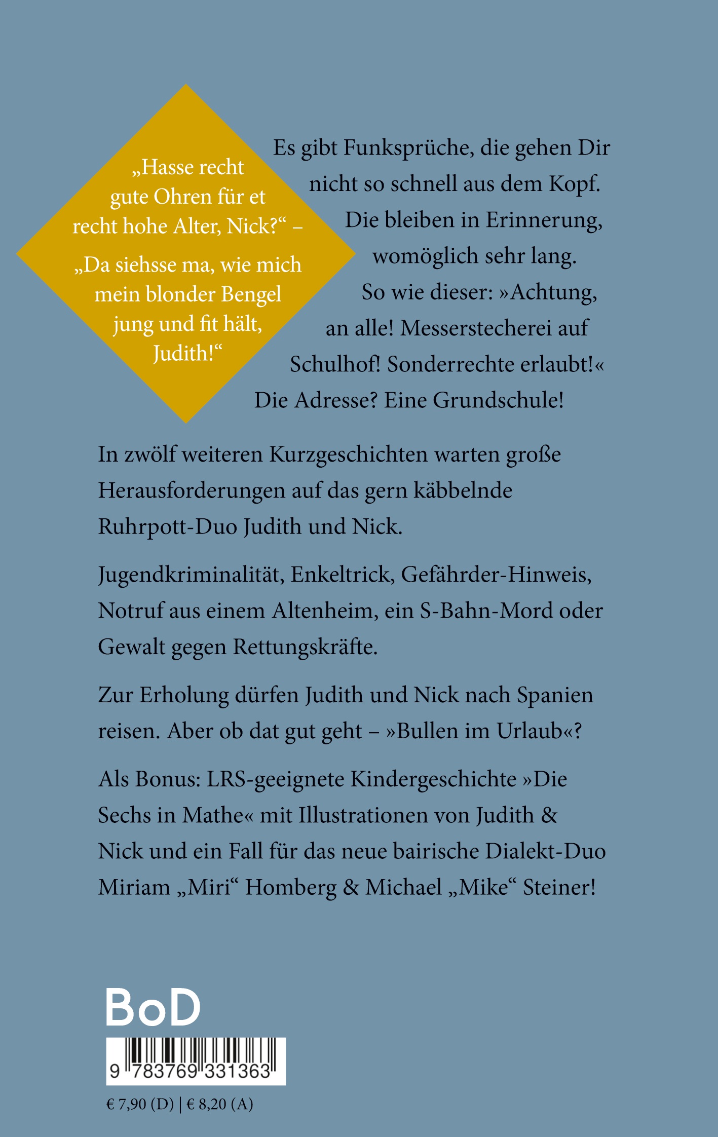 In zwölf weiteren Kurzgeschichten warten große Herausforderungen auf das gern käbbelnde Ruhrpott-Duo Judith und Nick.