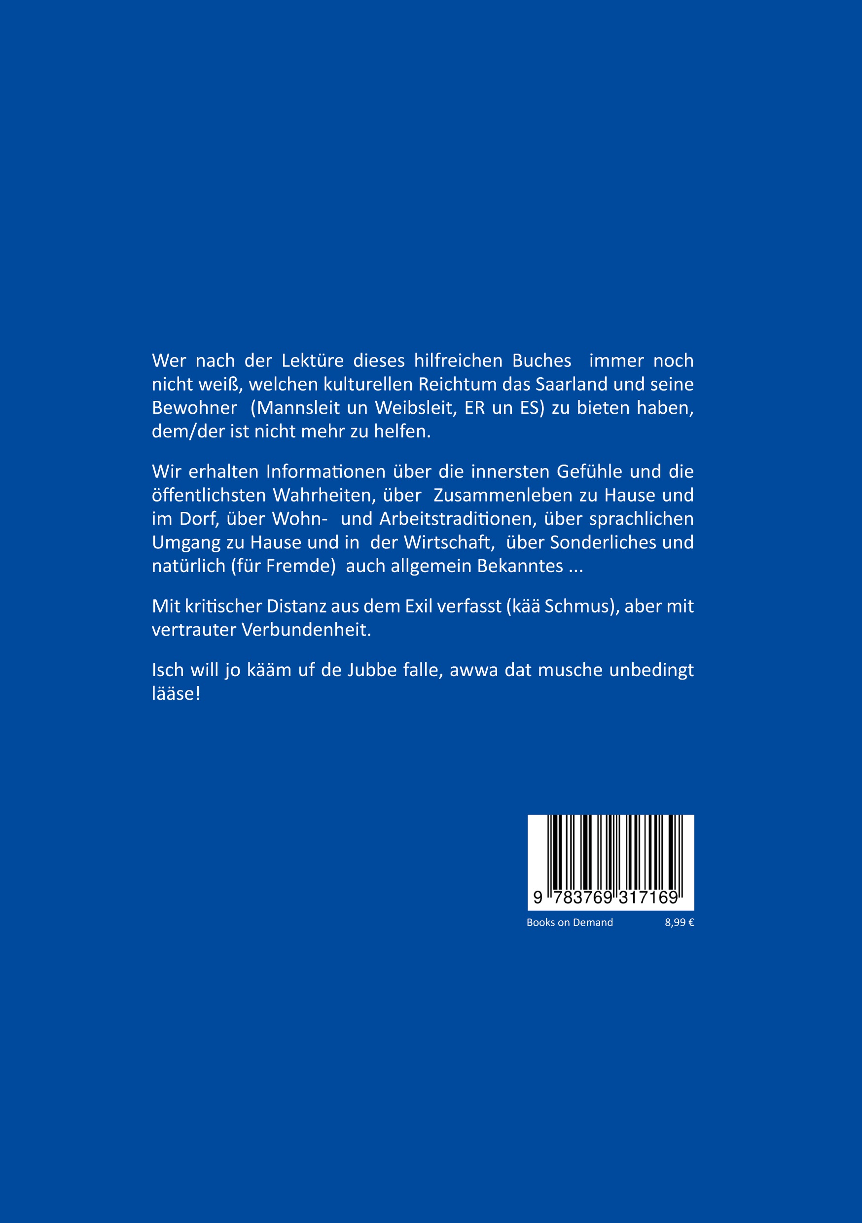 Wer nach der Lektüre dieses hilfreichen Buches immer noch nicht weiß, welchen kulturellen Reichtum das Saarland und seine Bewohner (Mannsleit un Weibsleit, ER un ES) zu bieten haben, dem/der ist nicht mehr zu helfen.