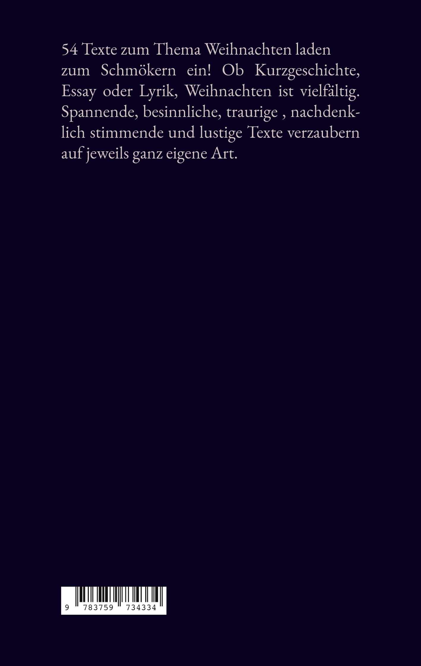 Ob Kurzgeschichte, Essay oder Lyrik, Weihnachten ist vielfältig. Spannende, Besinnliche, traurige, nachdenklich stimmende und lustige Texte verzaubern auf jeweils ganz eigene Art.