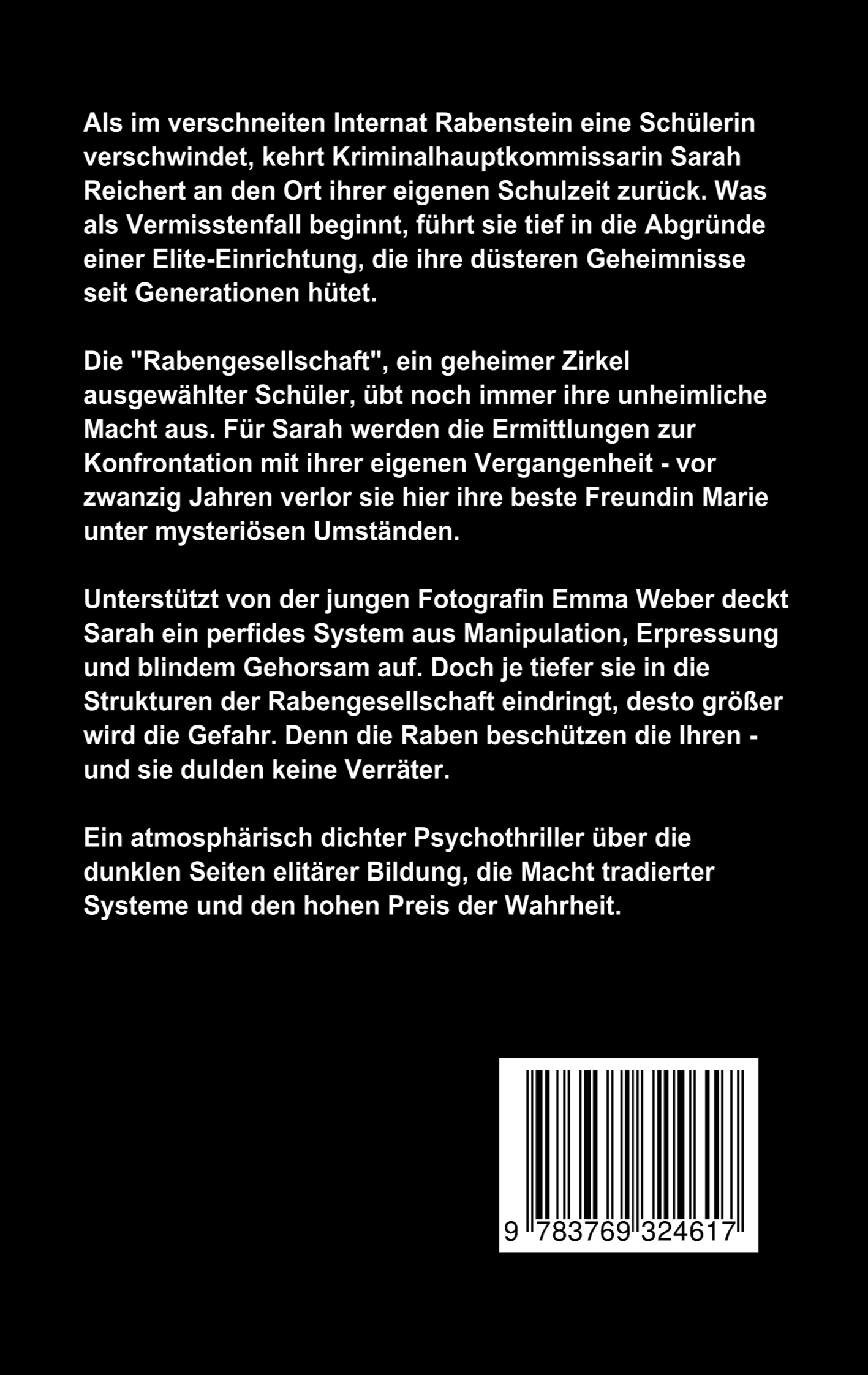Als im verschneiten Internat Rabenstein eine Schülerin verschwindet, kehrt Kriminalhauptkommissarin Sarah Reichert an den Ort ihrer eigenen Schulzeit zurück. Was als Vermisstenfall beginnt, führt sie tief in die Abgründe einer Elite-Einrichtung, die ihre düsteren Geheimnisse seit Generationen hütet.